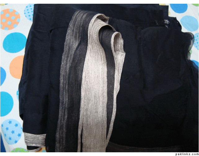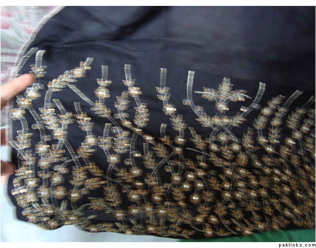 **Black Shirt - work on the borders and bazu. Crush used for body and piping around the chalks and dupatta. comes with straight trousers. **