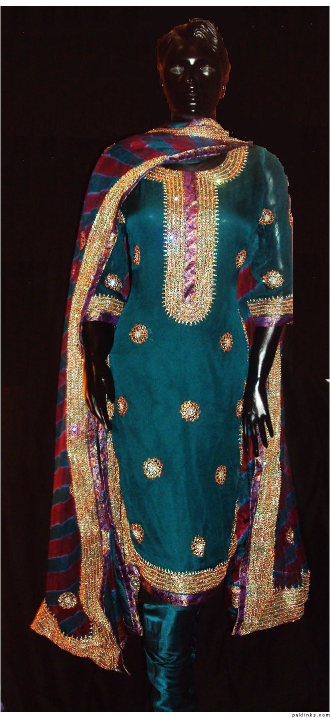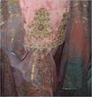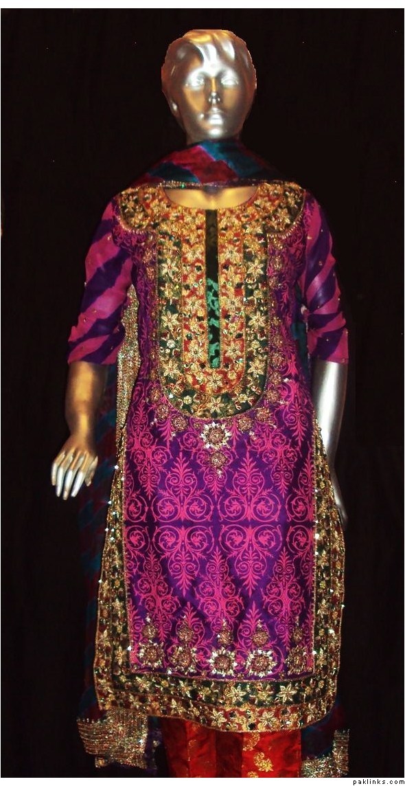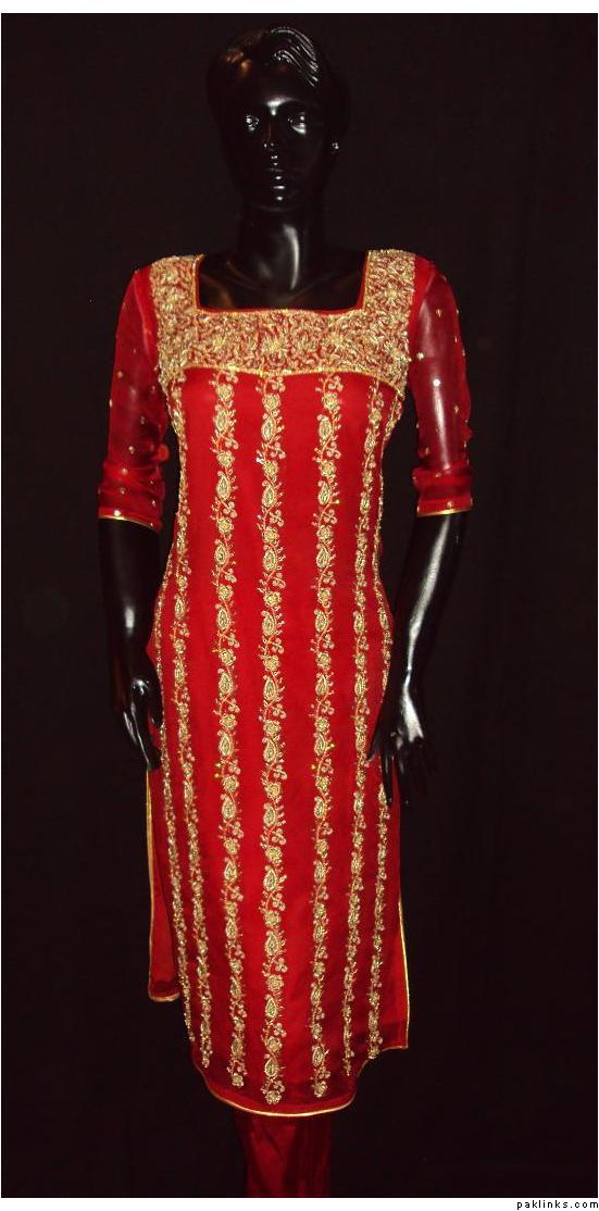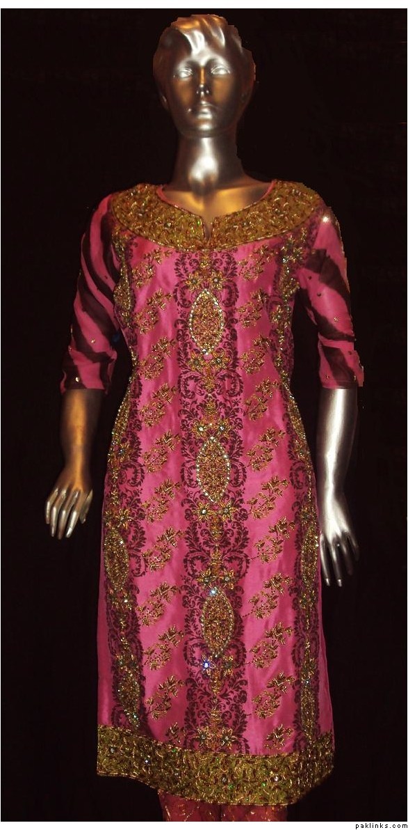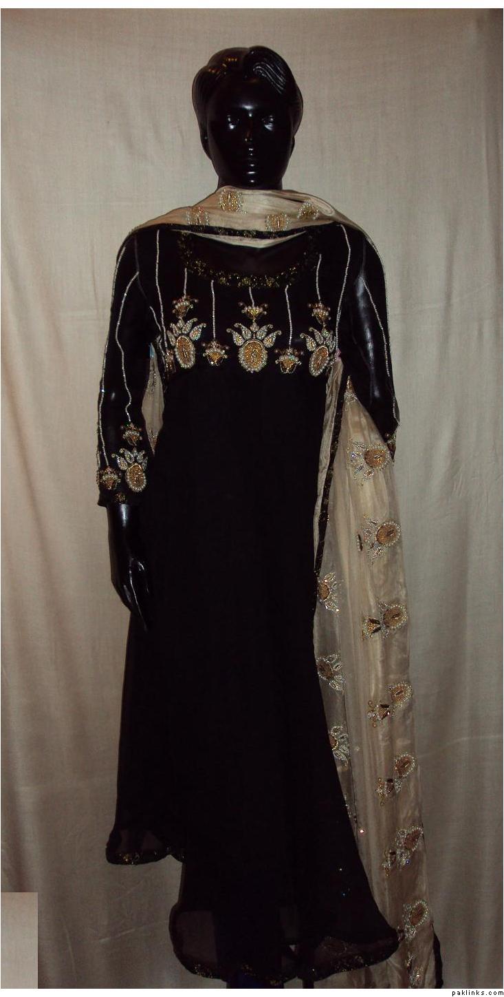The dress you asked about, the shirt is chiffon, dupatta is banarsi chiffon and bottom is charmeuse. Embroidery includes, tilla, sequins, beads, kora, zero size gota, pearls, crystals, cut pipes and add ons. The outfit is all handwork.. no threadwork/machine whatsoever. It's $280