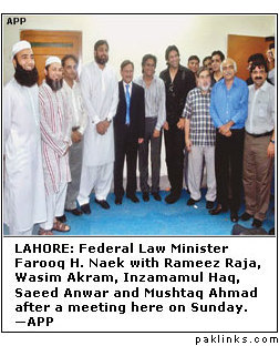 The former cricketers met Federal Law Minister Farooq H Naek in Lahore on Sunday to discuss the failing state of the game in the country.