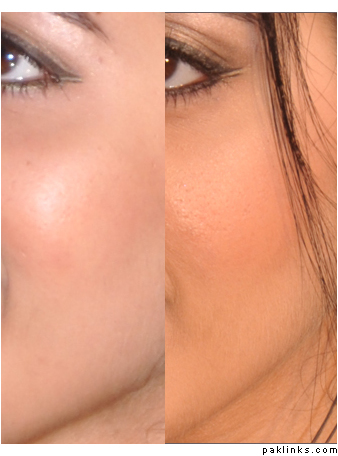 The left one is a light layer and the in the right one, I built up a few layers and am also wearing a lot of powder. Overall it does make my poc marks much less visible but whether they are visible in photos depends on the lighting/flash etc: