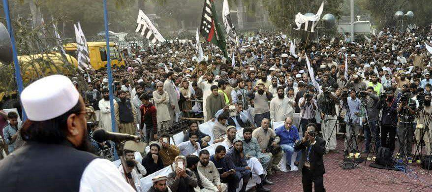 LeT/JuD rally at Nasir Bagh, Lahore, Sunday.UN-designated terrorist Hafiz Saeed wants Shaheen,Ghori &Ghaznavi missiles handed over to Saudis
