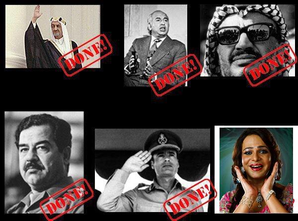 You have done a disservice to Bhutto by putting him next to Kings, tyrants, dictators and murderers. Of the people you have pictured, Arafat died a natural death and the rest were killed by their own countrymen. Who is the enemy?
