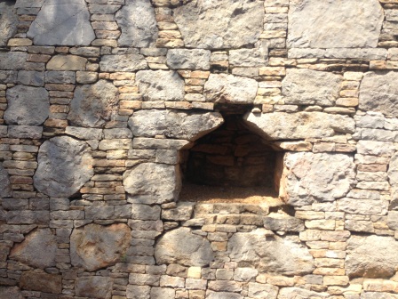 This picture clearly shows that four periods (see the difference in bricks) that the city has witnessed, it was destroyed and rebuilt many times during its tumultous history.
