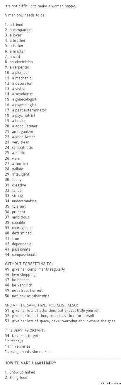 As for you women, seriously. Quit telling us what to do and let us be happy. Oh yes behind eveyr successful man is a very diligent and loving mother. Not a wife. :D