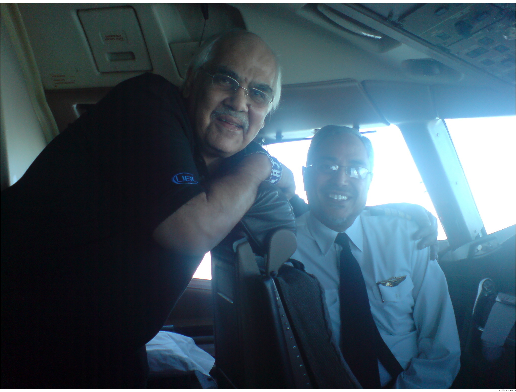 BOTH; Captain Nasimullah & Captain Aarij of PIA 777 Boeing flight from Lahore to Manchester were kind to invite me to the cockpit where I stayed around 4 hours and saw the amazing mechanism… flying over various countries…wondering that this small cabin caters to the destinations of over 400 passengers from one point to the other…1000’s of miles away.