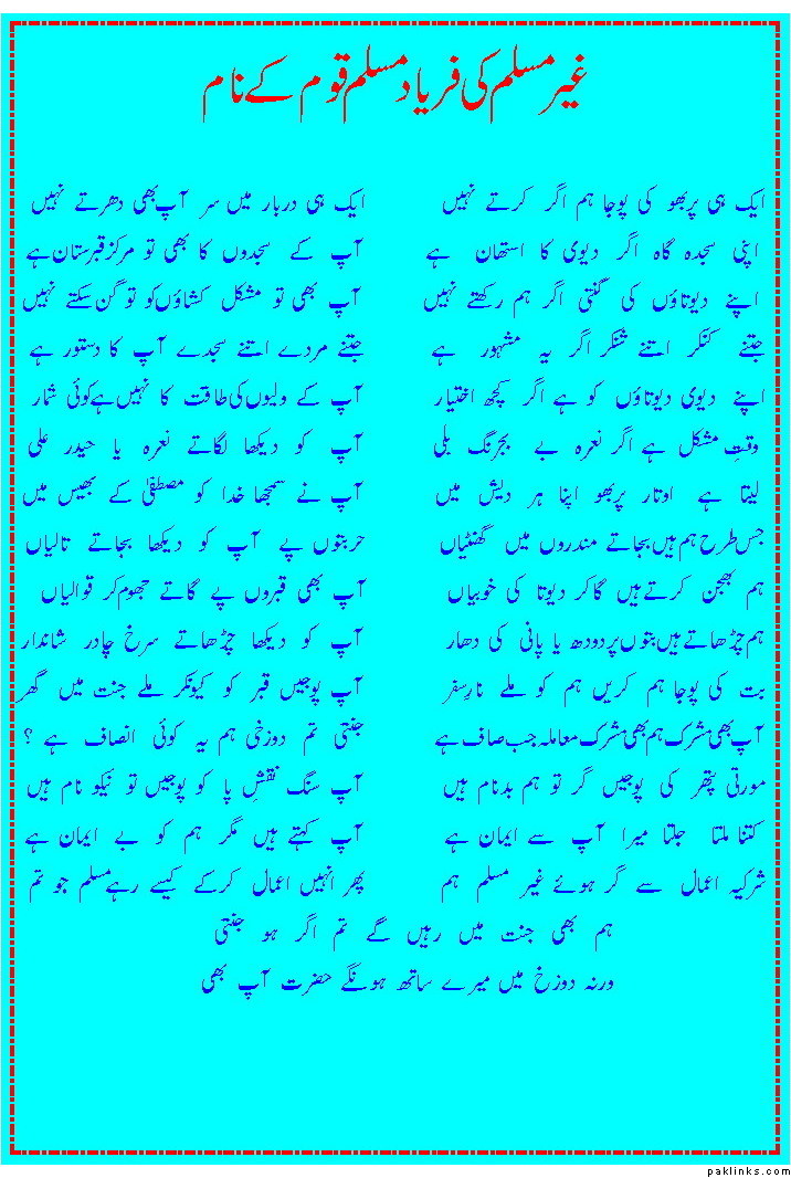 The reply to his poem is to write a counter reply using the Brahmins as an example to compare with the monotheistic stance as opposed to the mushrik stance. And then to go a level further and propound on the fairness in Islam as opposed to the unfairness by the Brahmins.
