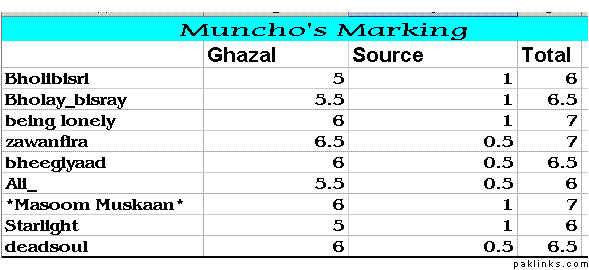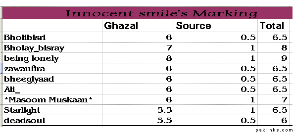 First of all I want to thank the contestants who participated in the contest. And to the judges who spare time from their busy schedules for reading and marking the entries. I must say that their grading was tough. Told them to be ready to get beat by people.(tamatar tyar rakho) I also want to say I was very disappointed by some people. I sent them private messages to remind them that we are having a contest and that it would be great if they all could participate. But I guess they were busy wandering around on Gupshup. Maybe next time. :halo: