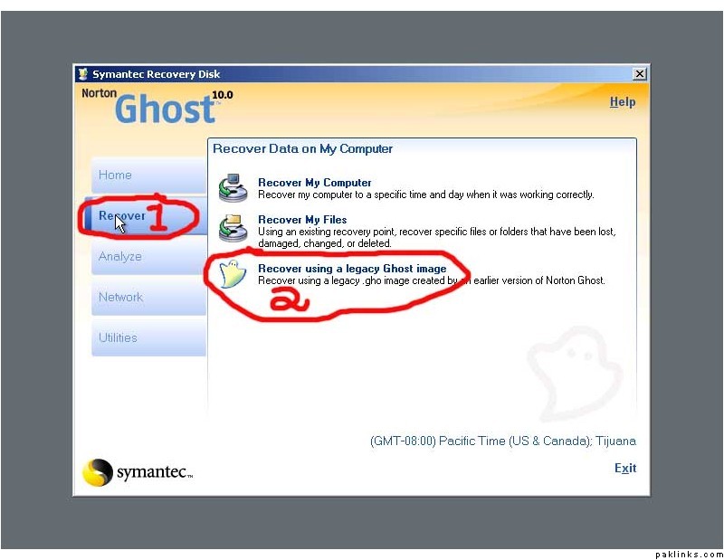 Just boot with the Ghost CD and once booted, go to the Recovery section and use the Legacy Versionof Ghost. See the screenshots below: