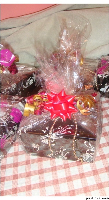 Another friend of mine distributed small green angels and red heart shaped scented soaps with the party favours the groom family had brought. Again no one complained and were quite happy.