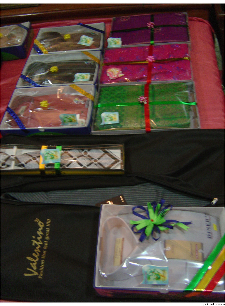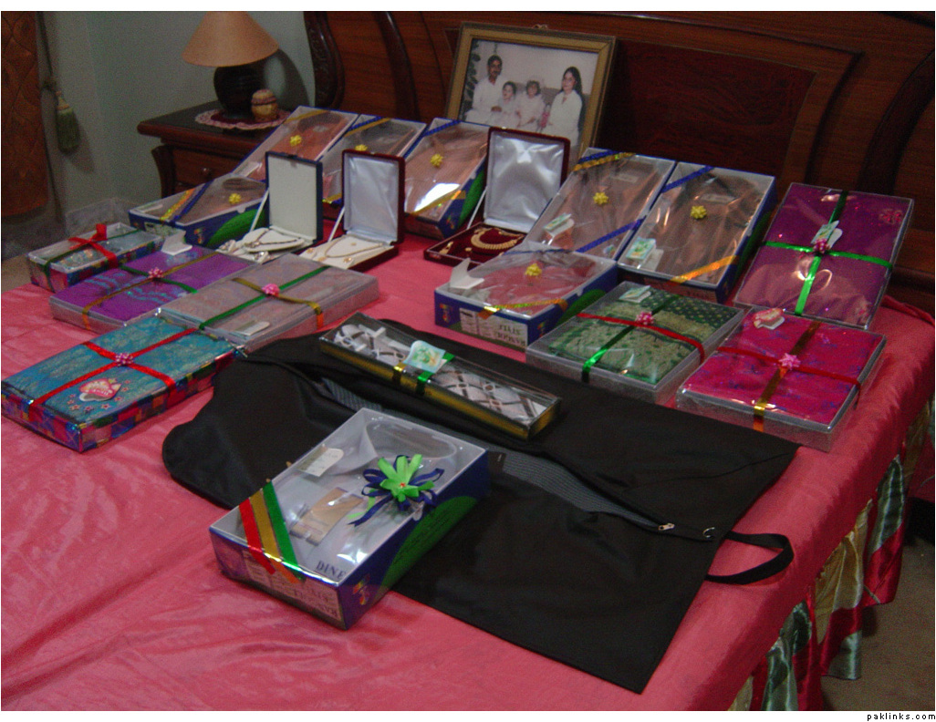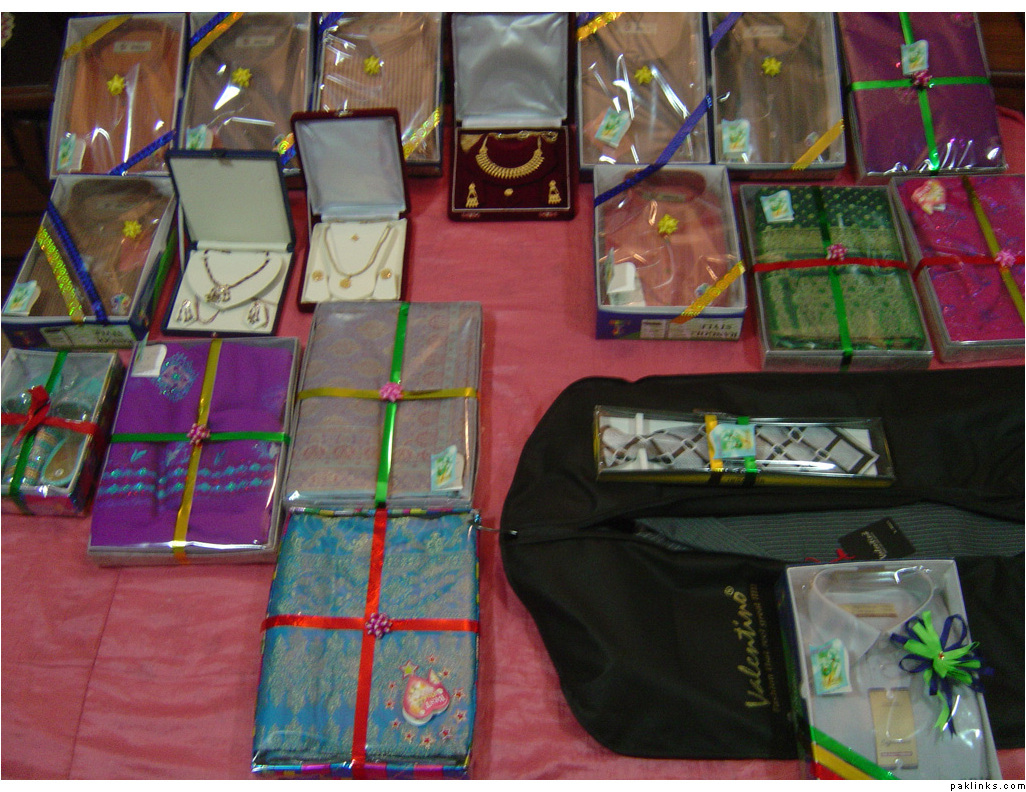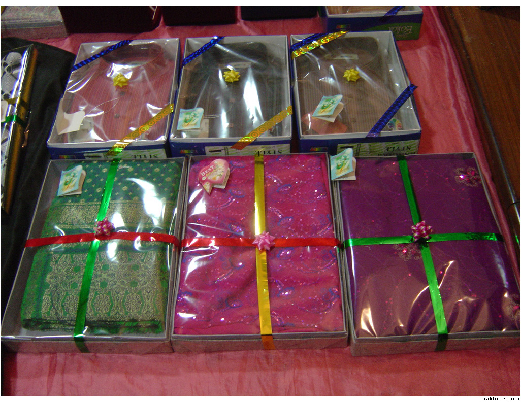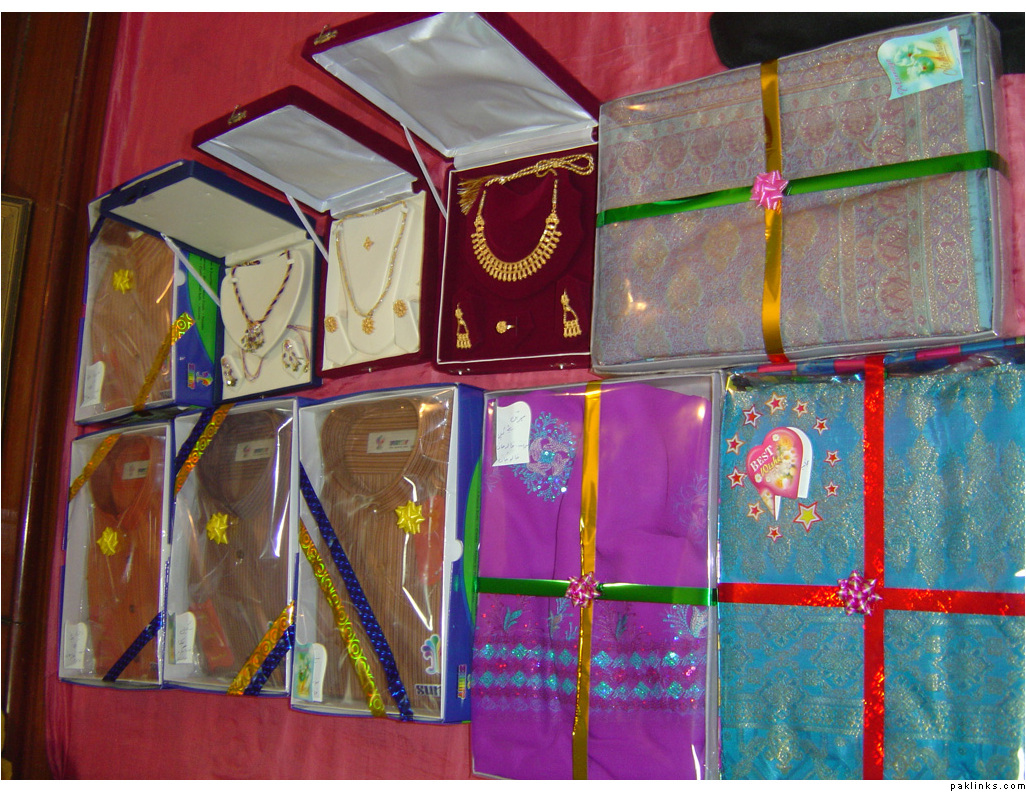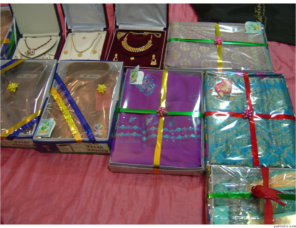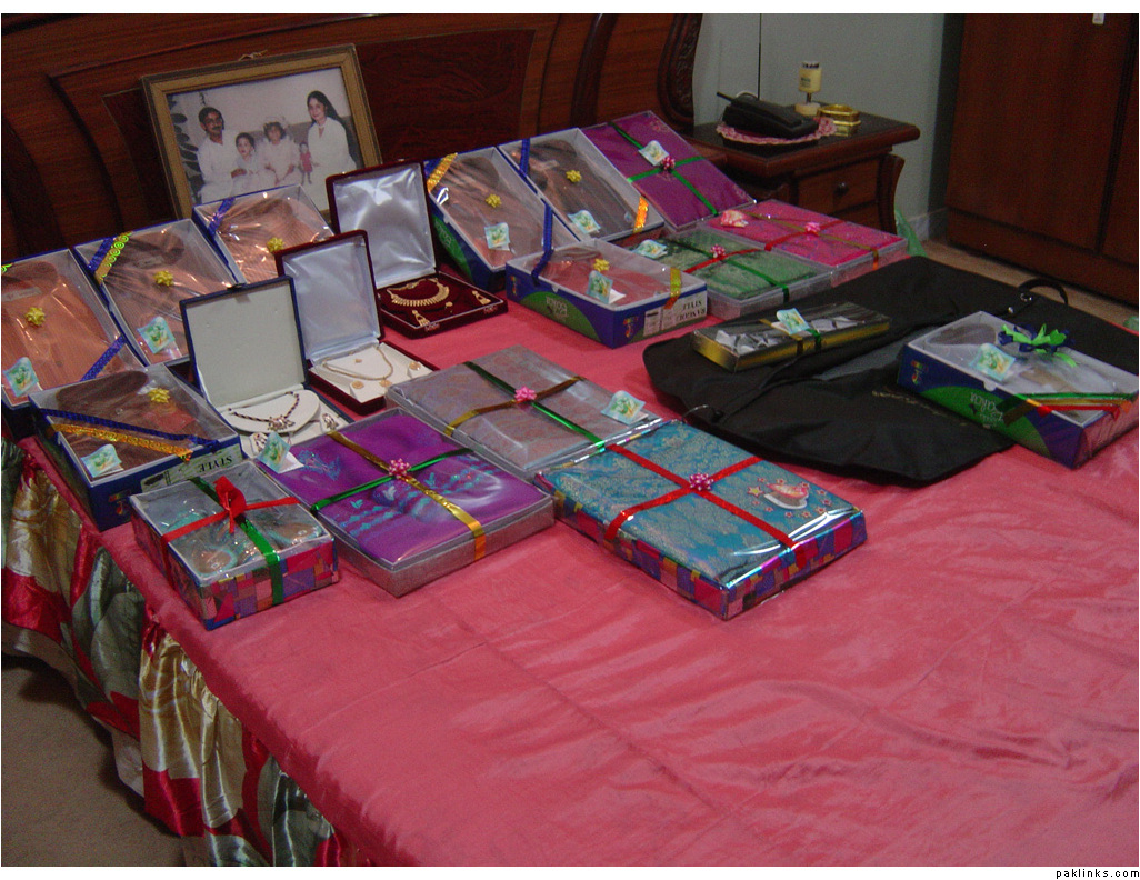 In my in-laws, gifts are given on the mayun day. The baree and dulha stuff is displayed on the mehndi day.