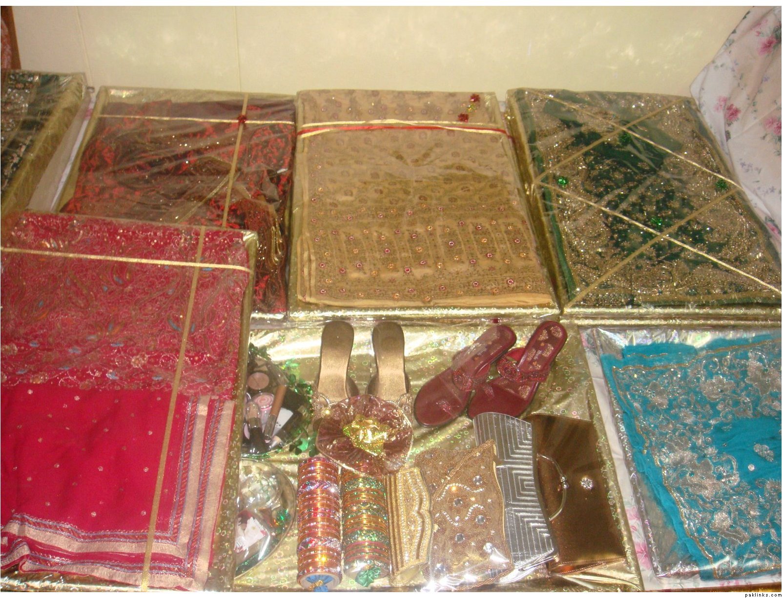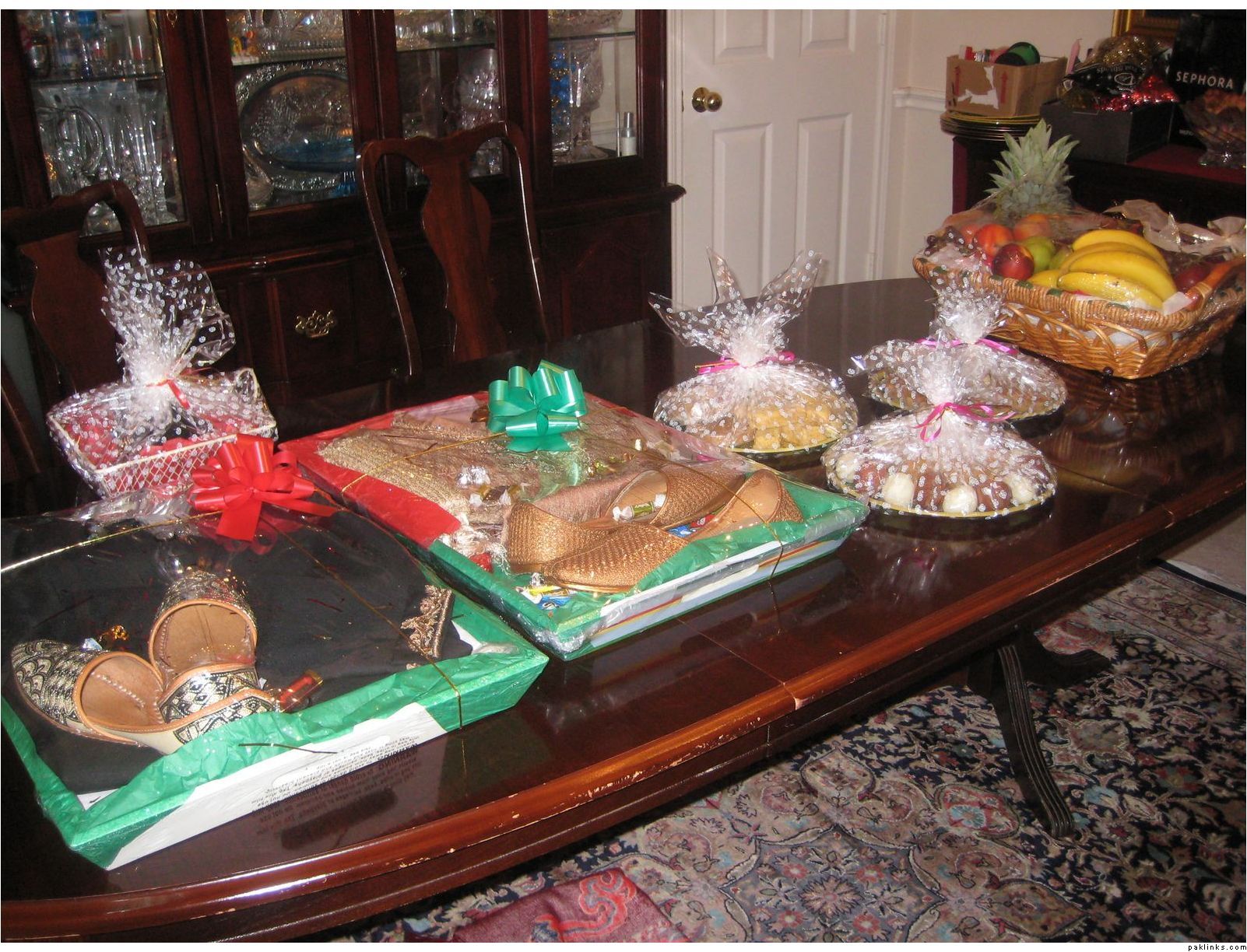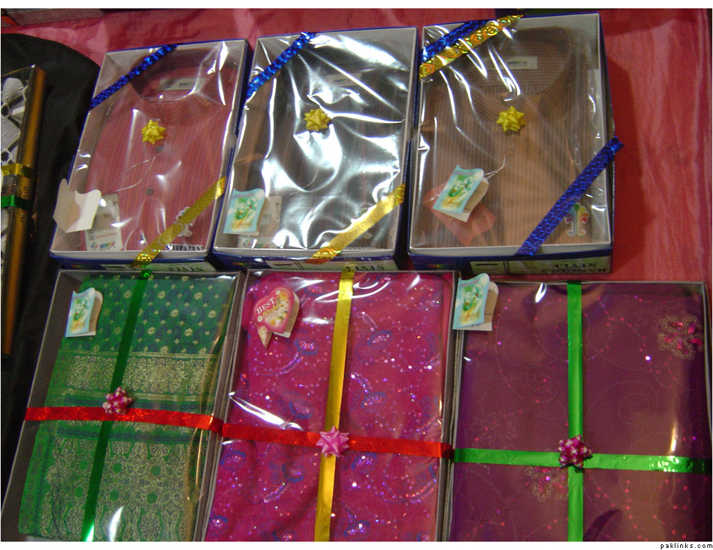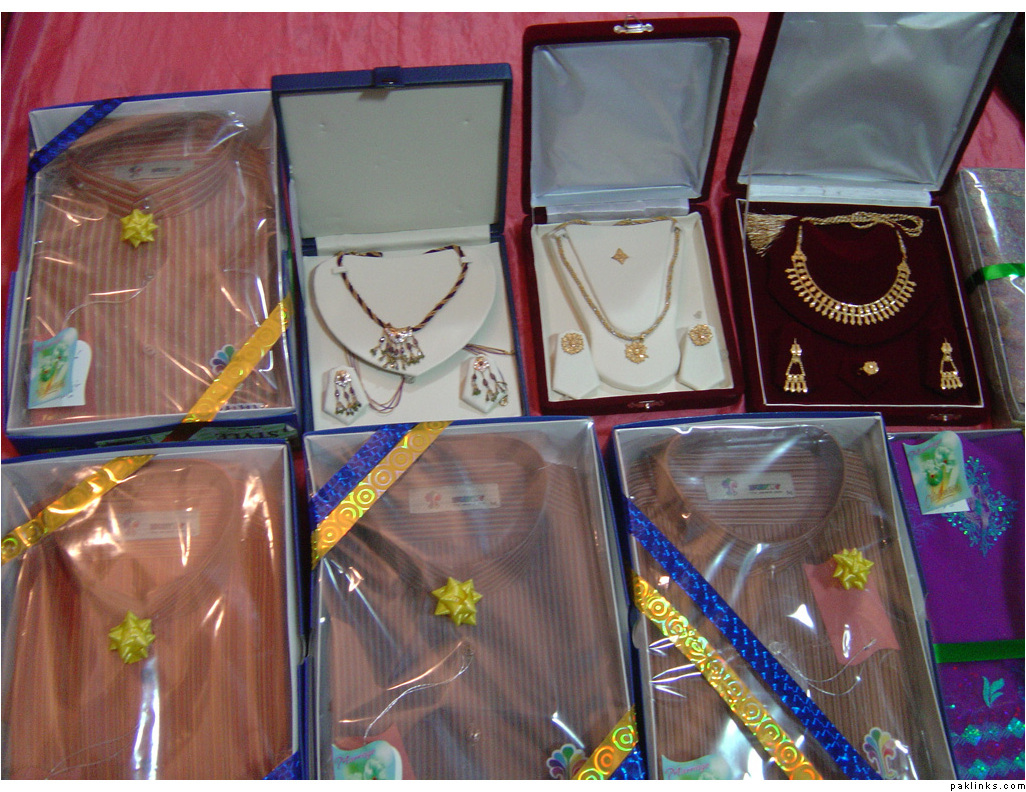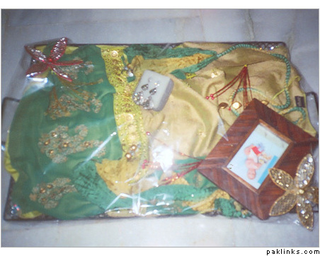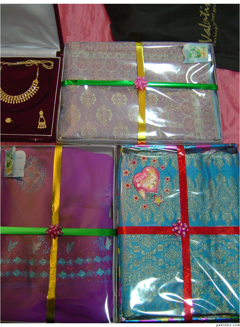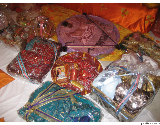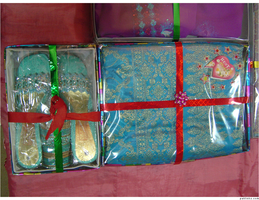 In my in-laws, gifts are given on the mayun day. The baree and dulha stuff is displayed on the mehndi day.