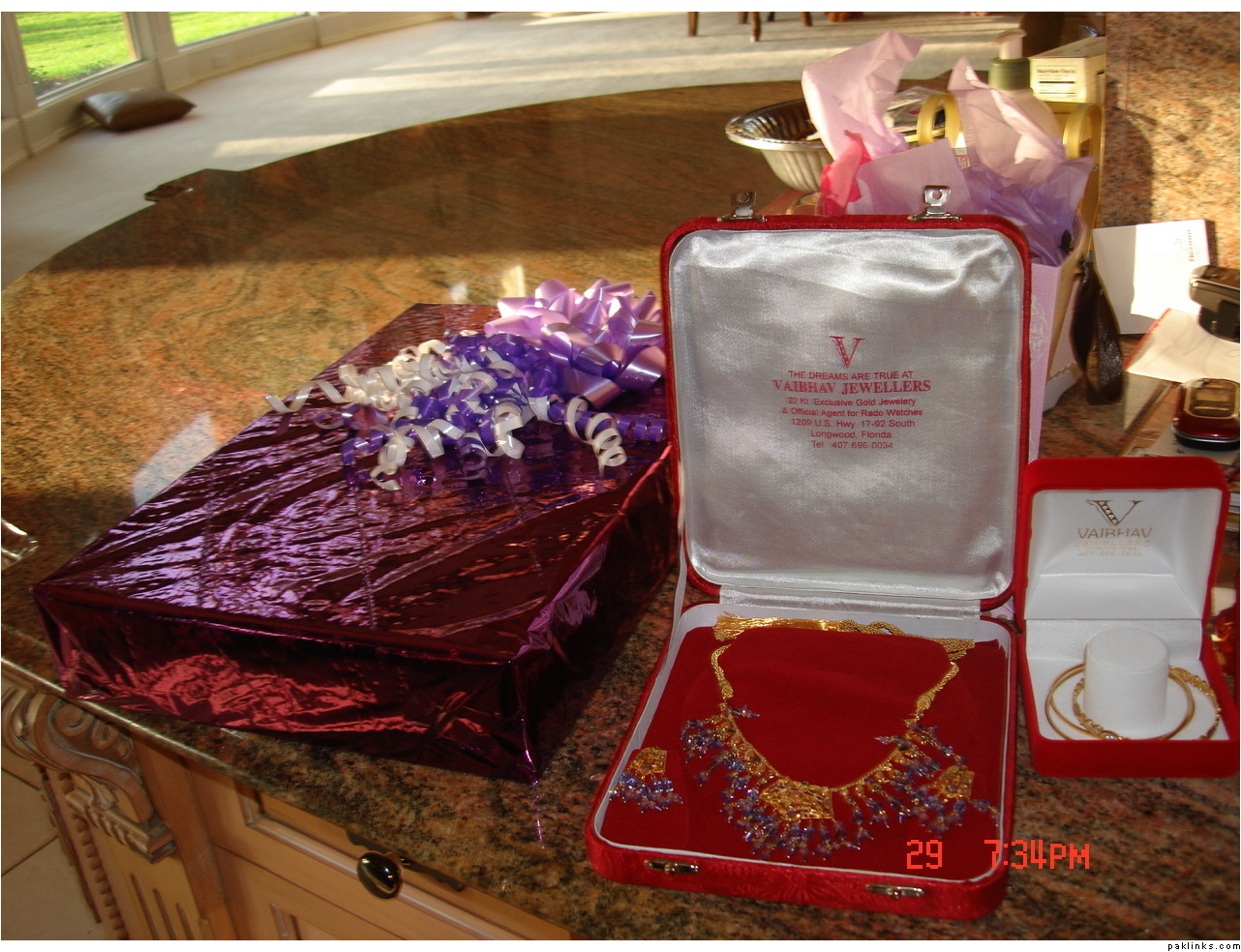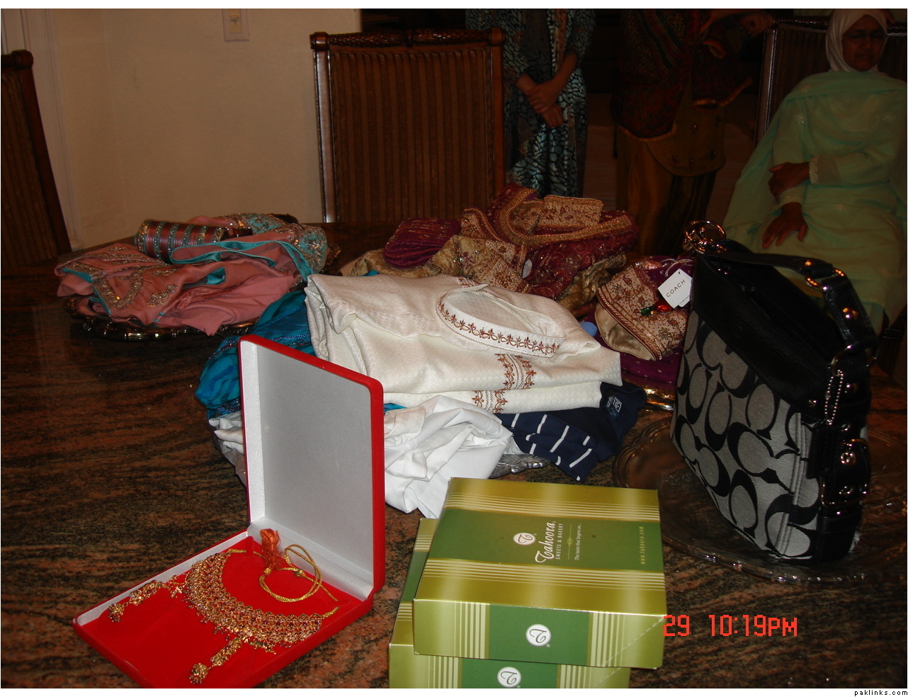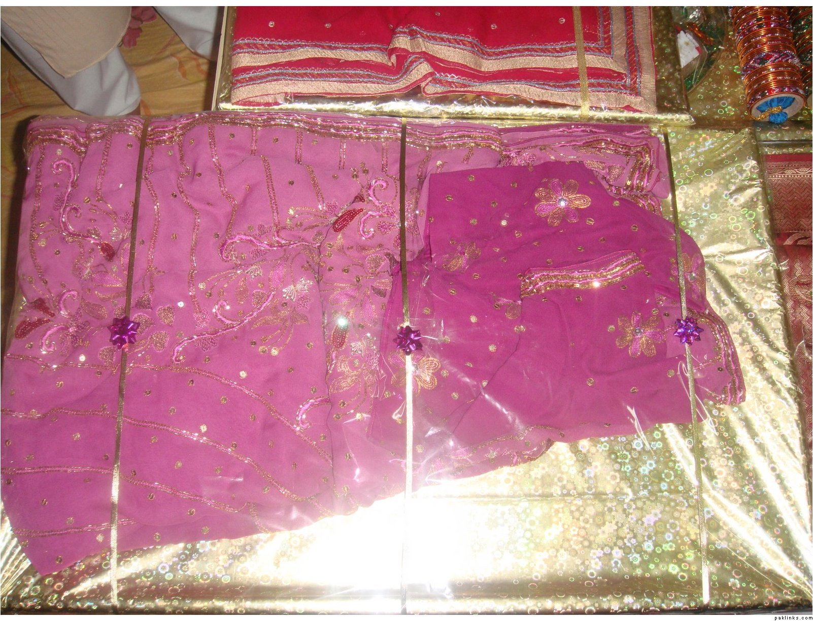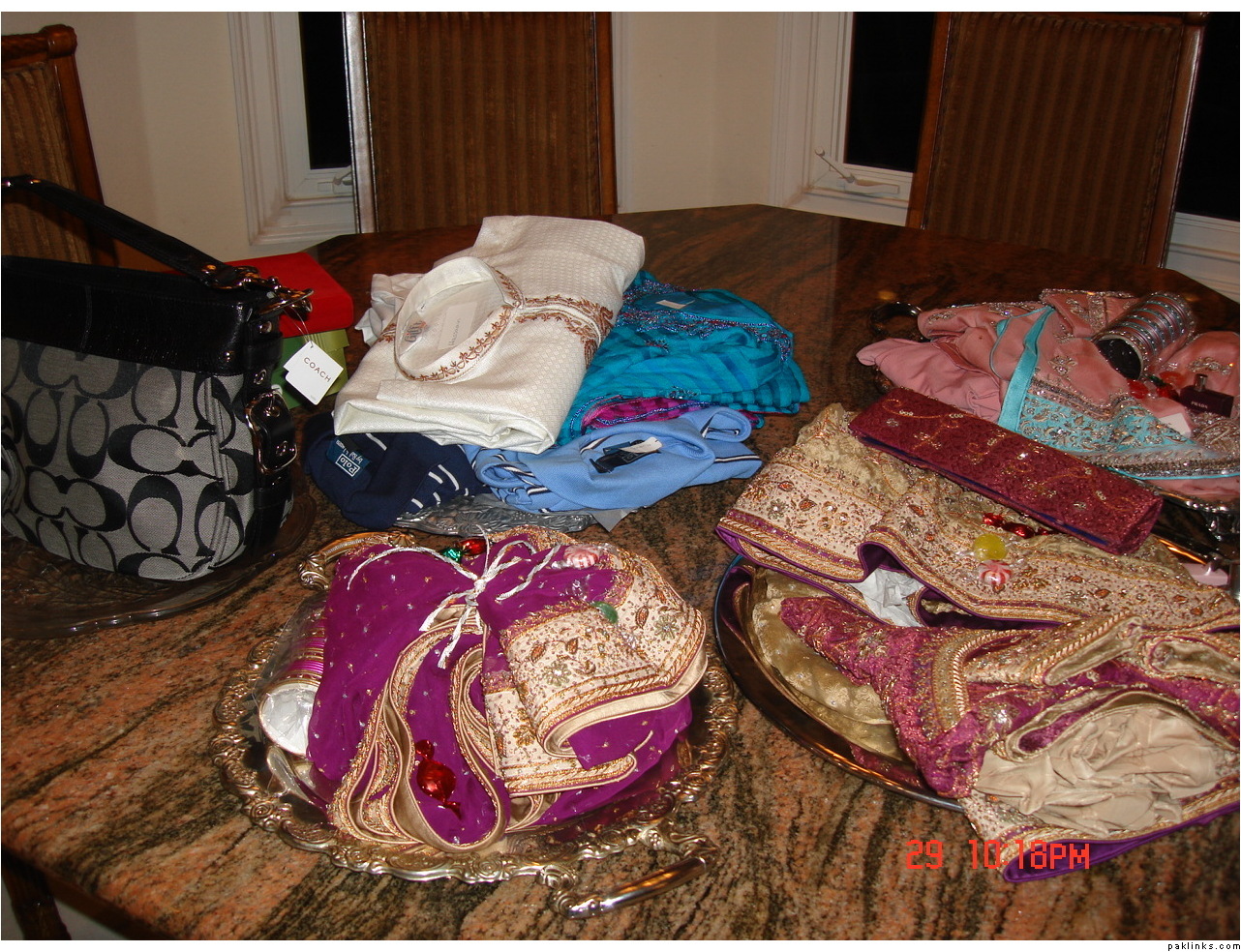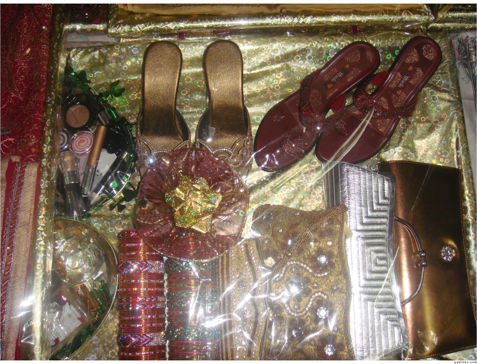 In my in-laws, gifts are given on the mayun day. The baree and dulha stuff is displayed on the mehndi day.