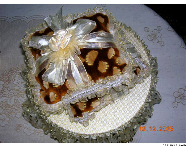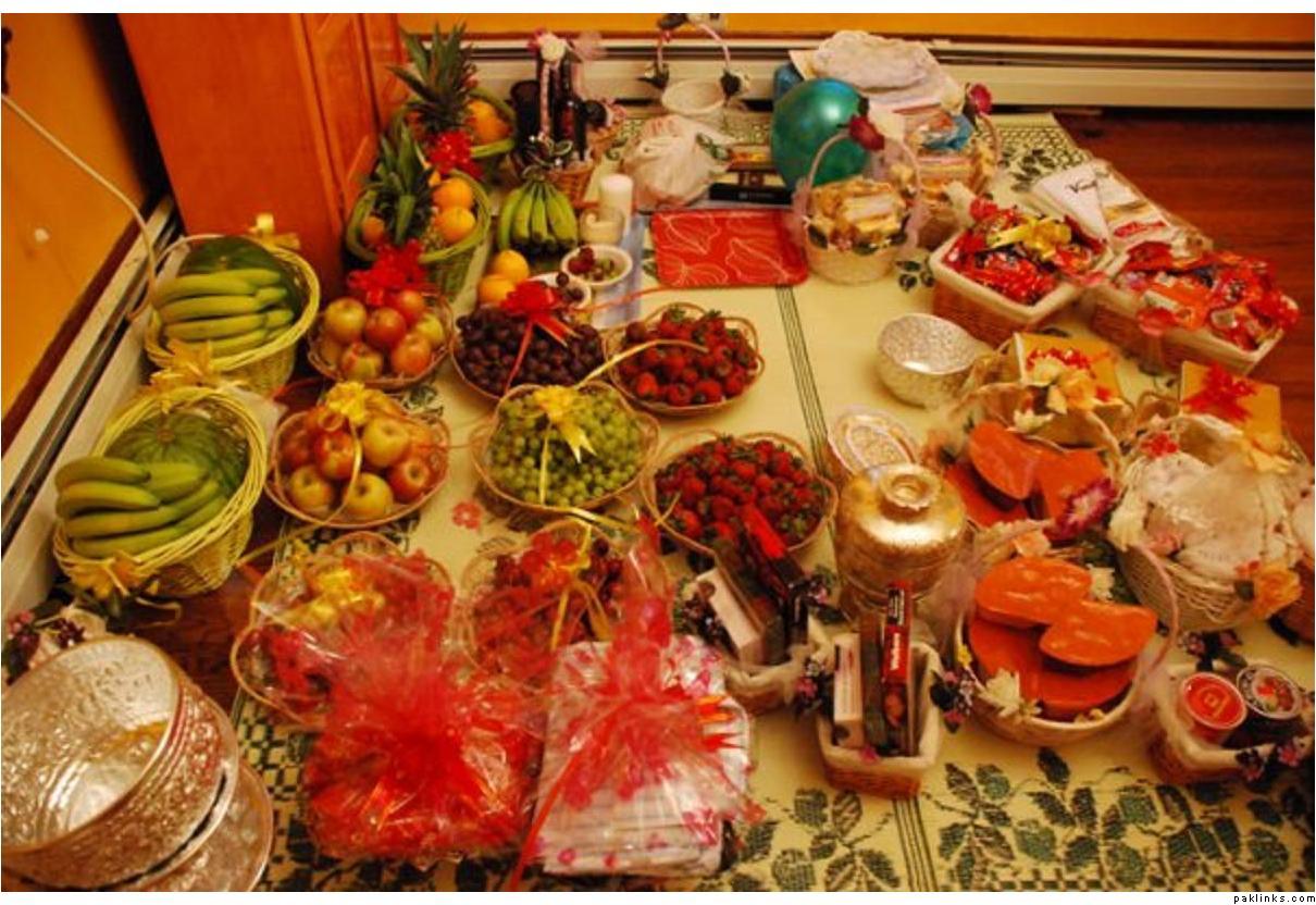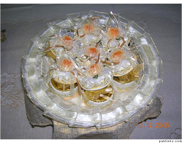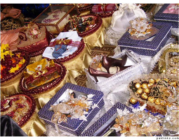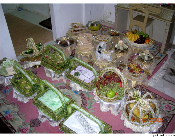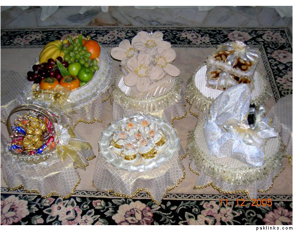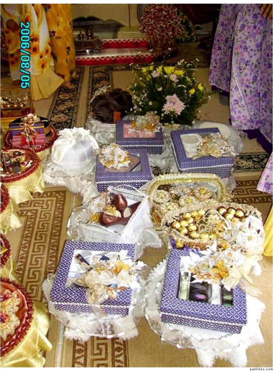 You can also put the MIL and nand's joras ininexpensive card boxes and decorate with ribbons. The Valima suit, shaadi sherwani, shirts, pants, ties, watch, shaving kit are a part of dulha's bari so your side has to take them over, too as gifts.