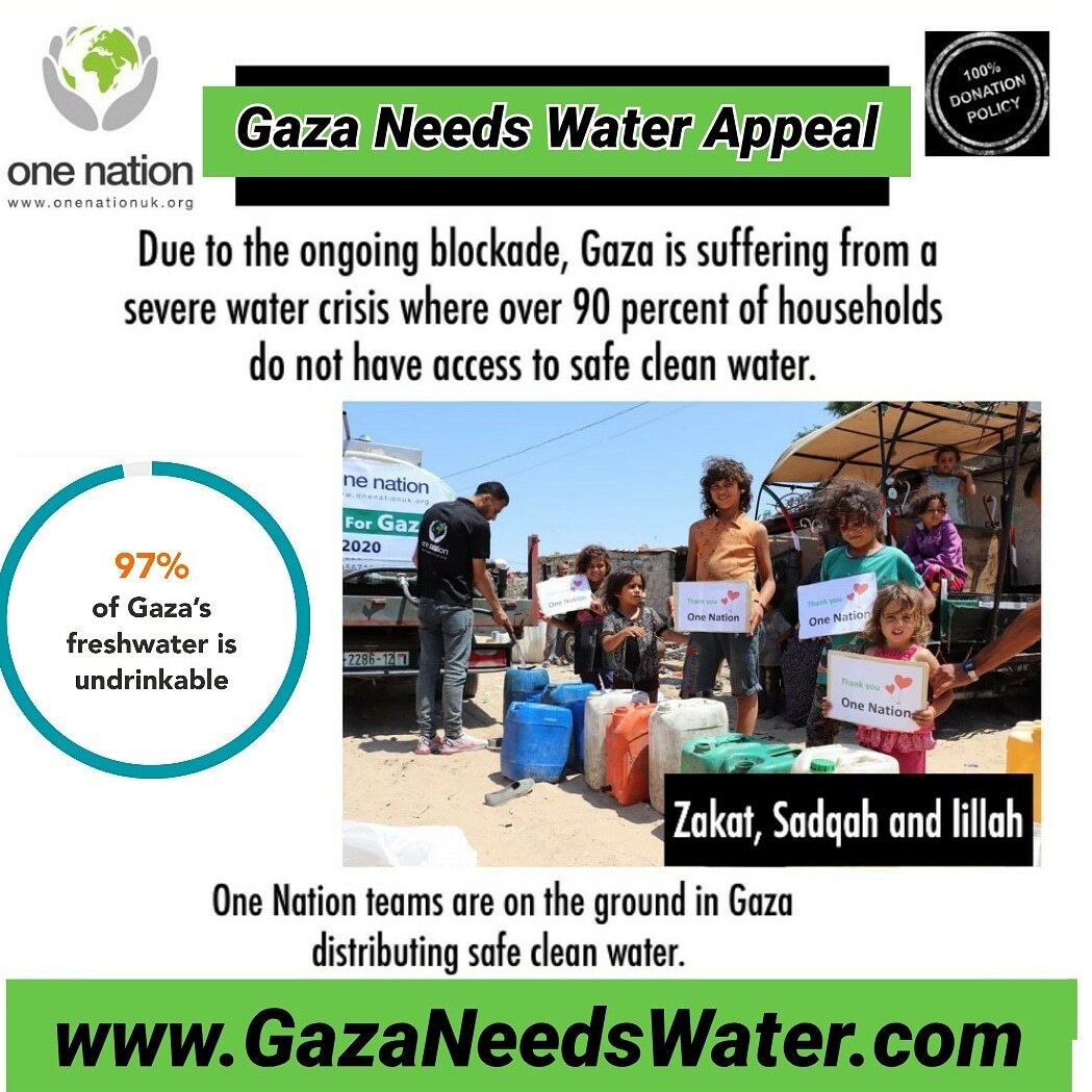 A 10 year inhumane blockade in Gaza has resulted in over 90% with no access to safe Water. One Nation teams on the ground are distributing safe clean Water to neediest.