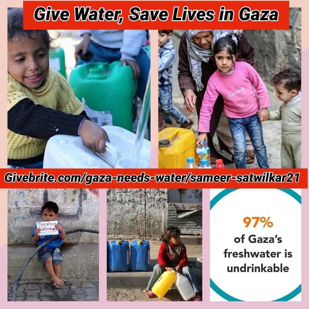 Please continue to donate whatever you can for lifesaving Water for Gaza where over 90% do not have access to a safe, clean water supply.