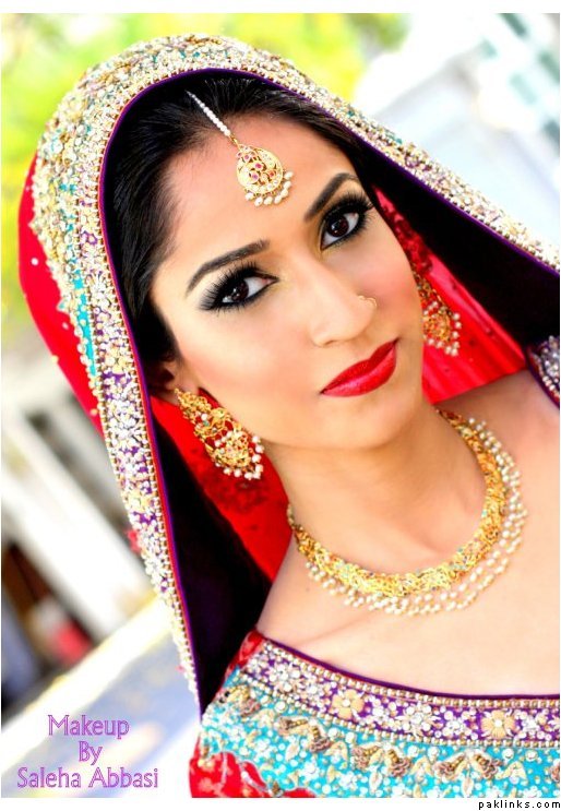 I noticed a girl on my friend’s list had a beautiful and interesting wedding look. Her profile pic mentioned she had her makeup done by Saleha Abbasi. I think we don’t have many people in north america that can contour a face and do beautiful makeup like the parlors back home can offer and then i stumbled across this.