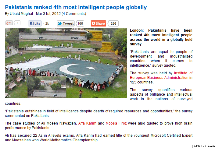 Pakistanis ranked 4th most intelligent people globally | The News Tribe