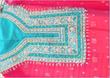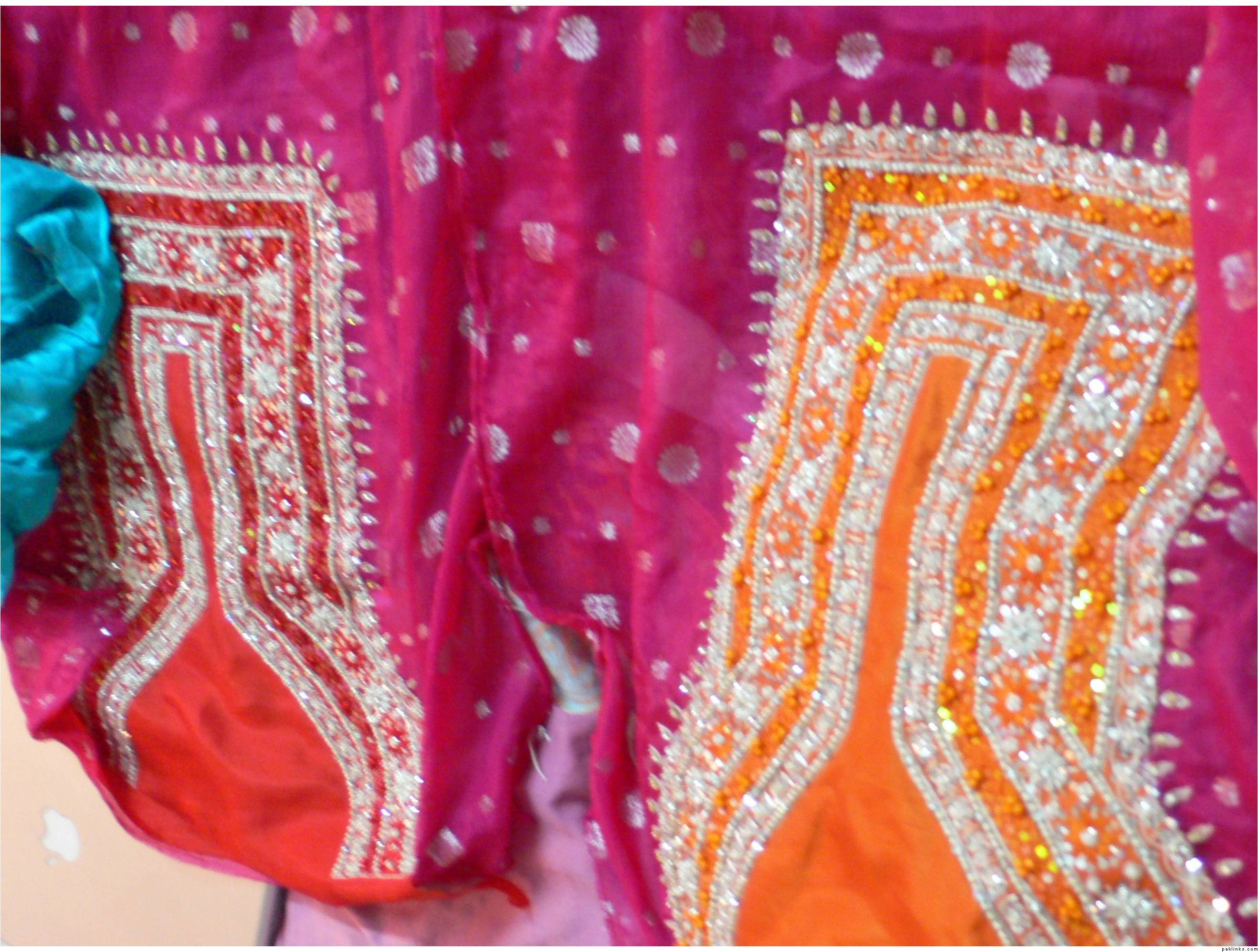 2 piece suit made with the best quality chiffaun - The sleeves, ghaira front and back and duppatta have ‘shamoos silk’ pattis with the whole area also lined with diamontees as seen.