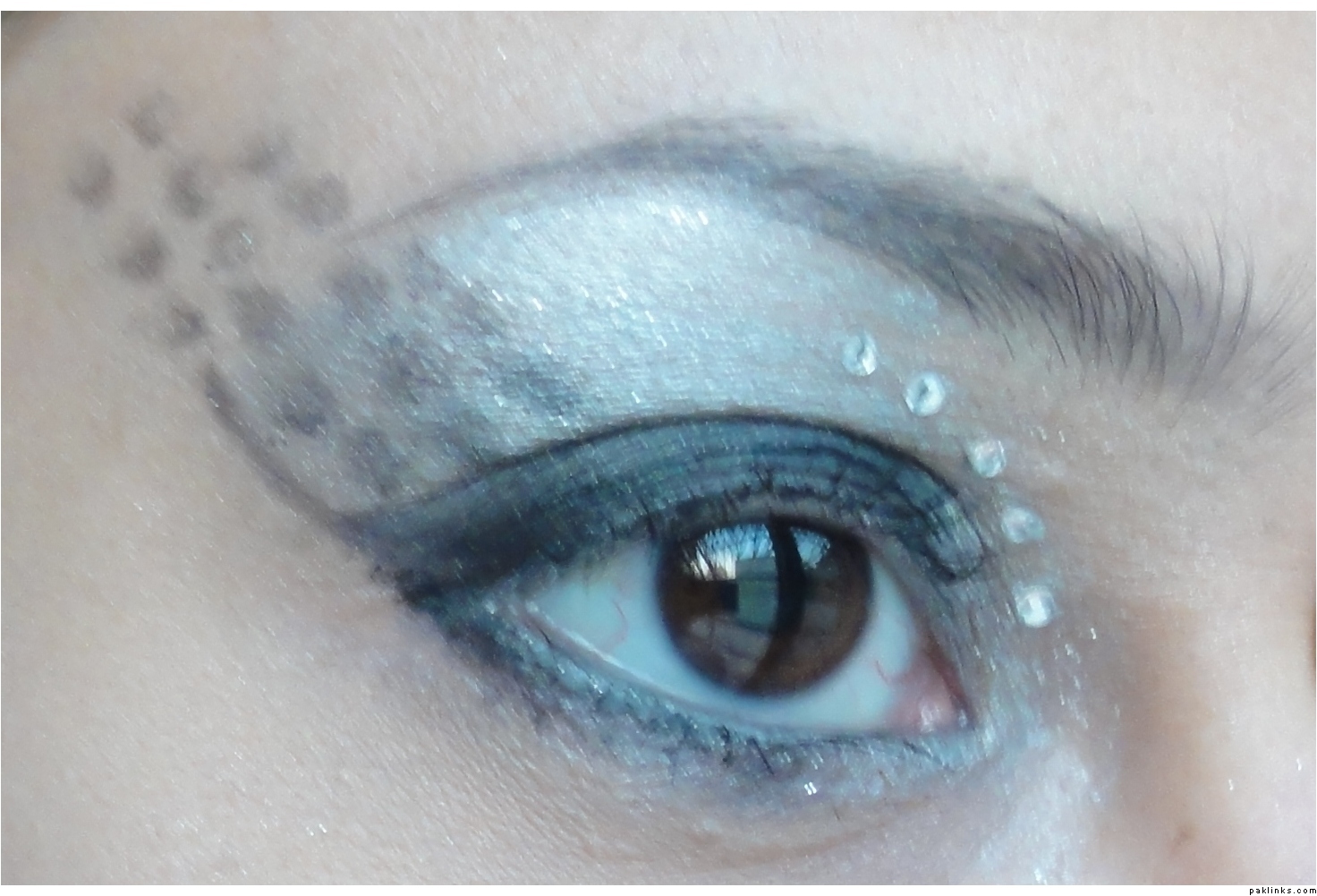 I don’t have any eyeshadow stencil, so cut the pattern in a paper. Tried twice and it was …