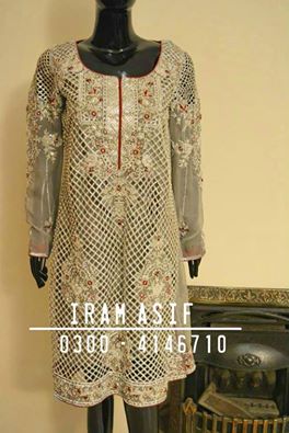 Ladies,really need your help. I’m looking for some design ideas for a semi formal kamiz made in grey net. Could u plz give me some ideas on style, colour combinations and what sort of trousers i should go with. I’m really stuck!