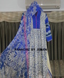 Fabric is pure embossed silk (self printed silk) for shirt and pure raw silk 60gms for pants. Dupatta is plain pure crinkle chiffon with banarsi finishing
