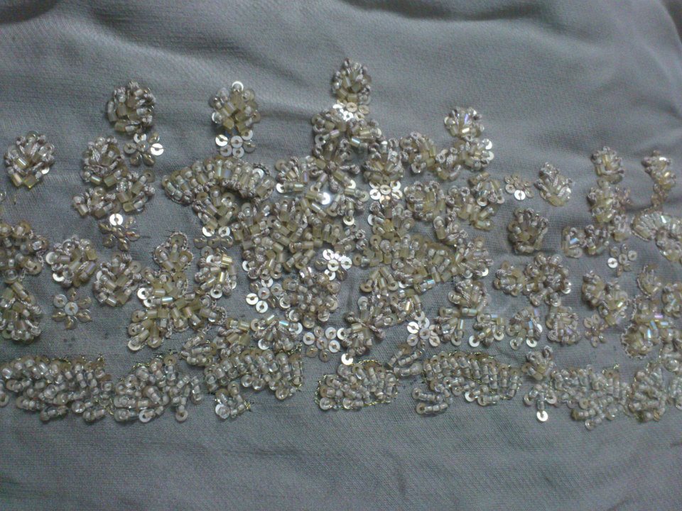 kaam on front, back and sleeves, heavy motifs (not sequins) spray on a kaamdani chiffon dupatta and plain chiffon sharara (lined)