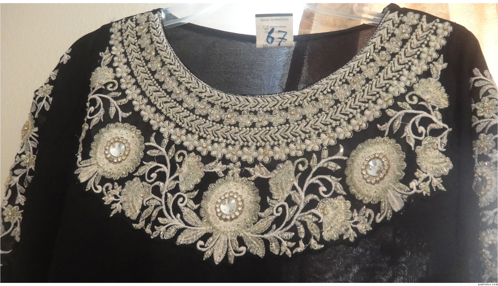 pure chiffon suit with stone work beautiful neck pkr 12,950 + shipping. For inquiries drop an email at [email protected]. code: IVC-COSTURA-01