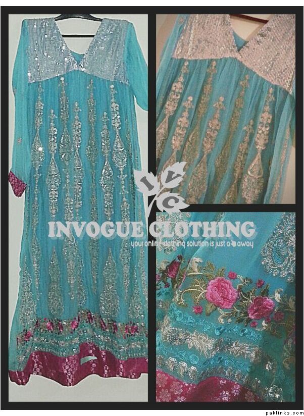 pure chiffon embroidered three piece with sequins fabric yoke for pkr 9800 + shipping. alterations can be done free of cost. For inquiries drop an email at [email protected]. code: IVC-COSTURA-04