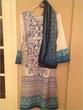Floor length shirt, 56" , flair 150", pure chiffon shirt and duppatta. Two toned beautiful dress. With pitta, sequins and diamanté , pure jamavar pattis at the bottom of the shirt. Pure silk pants. Size medium.