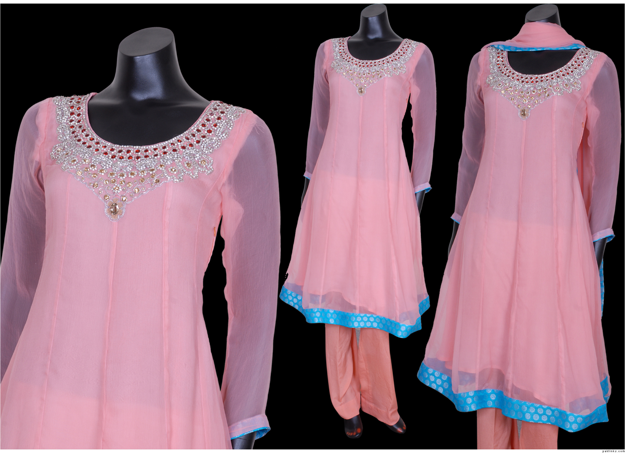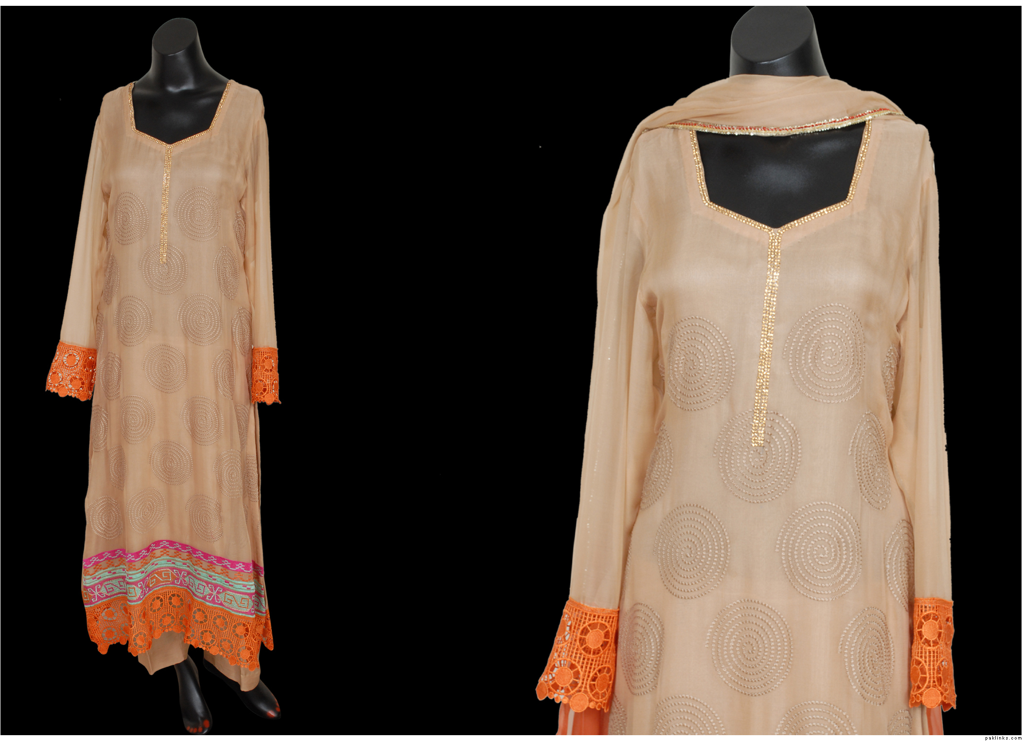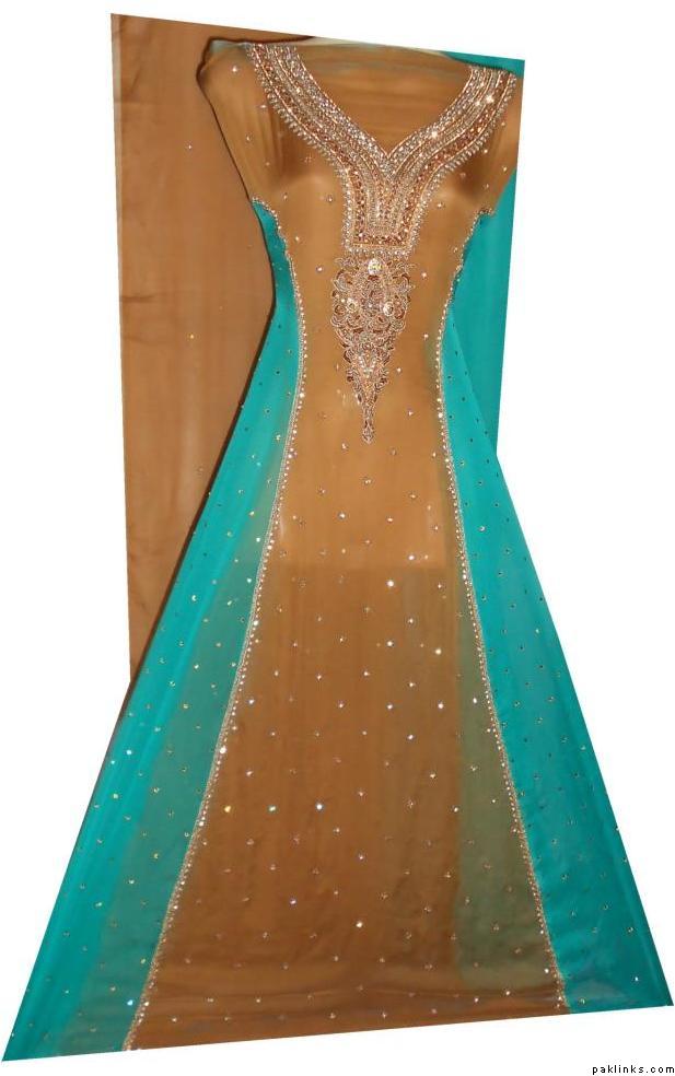 2.this is also in pure chiffon, front is fully embroidered, 2 tone dupatta,kathan silk pants. Price is Rs.9600.medium size.