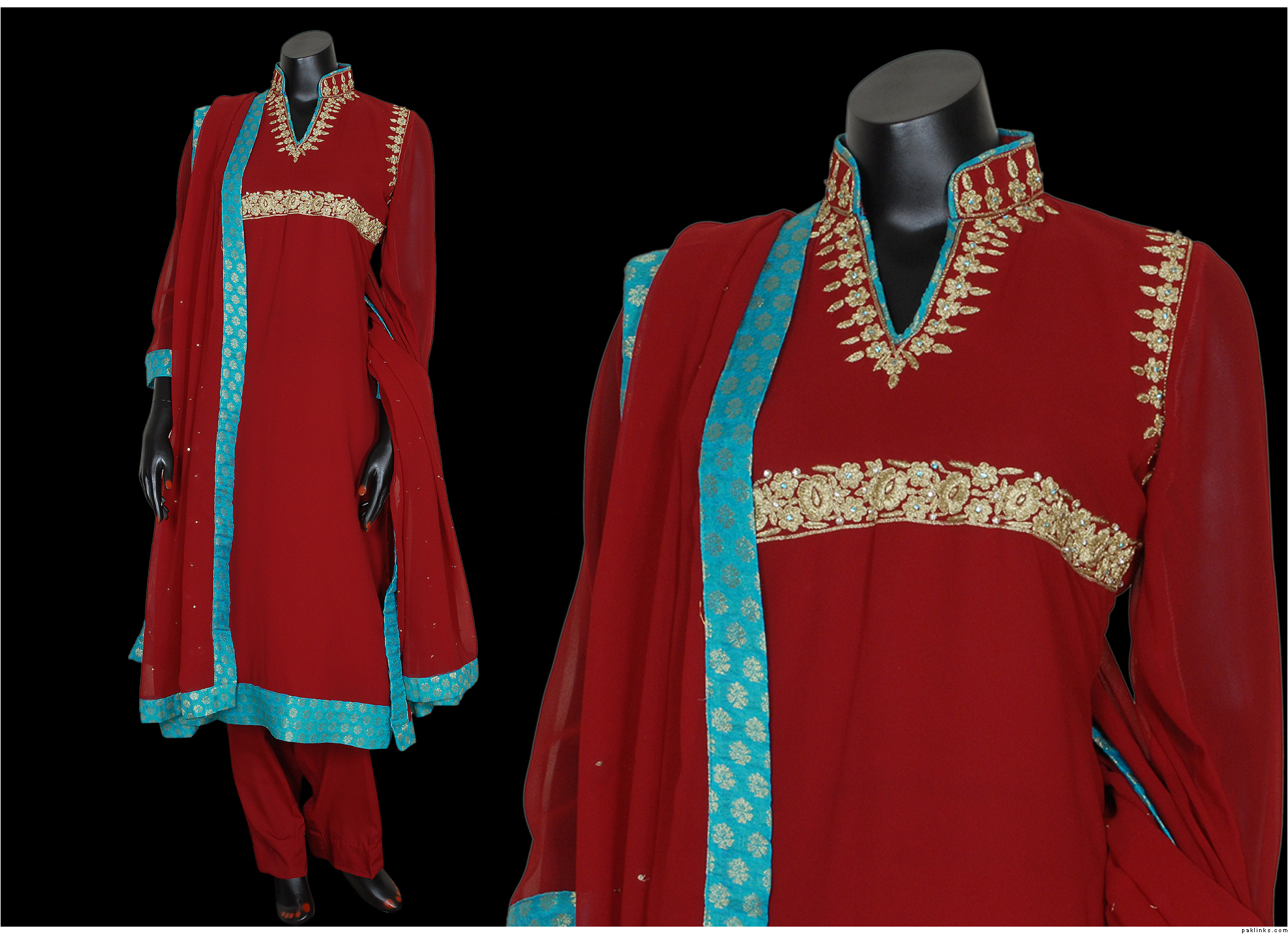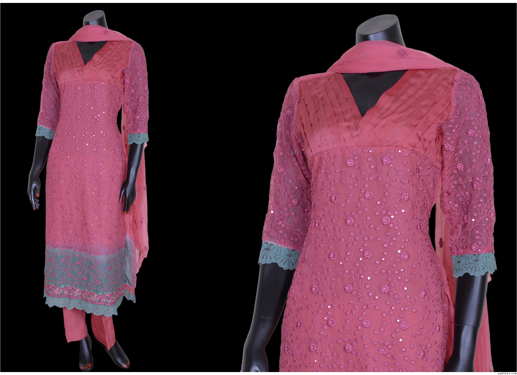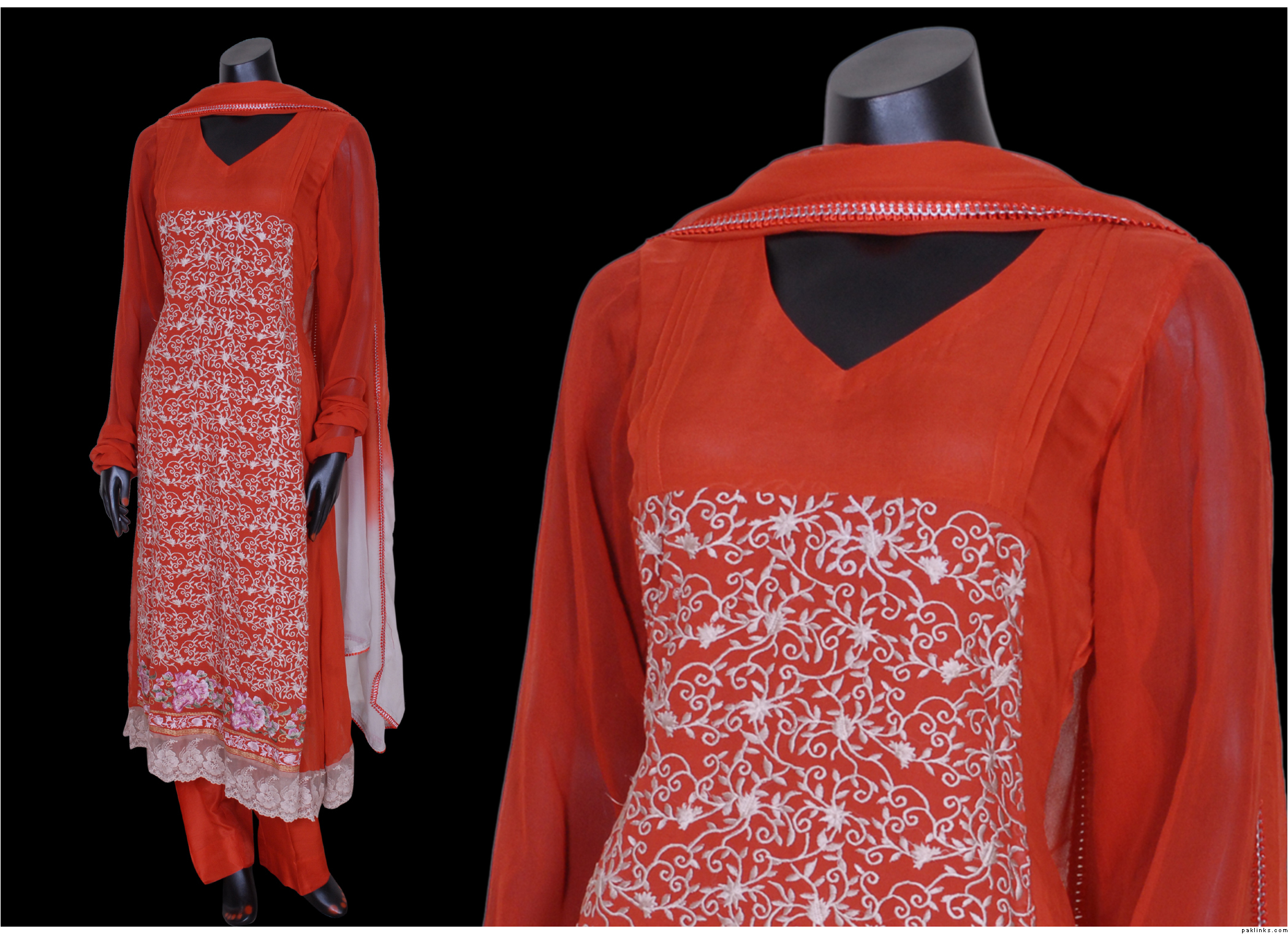 2.this is also in pure chiffon, front is fully embroidered, 2 tone dupatta,kathan silk pants. Price is Rs.9600.medium size.