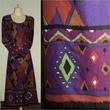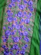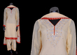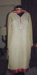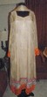 cream chiffon with purple embroidery. 51" long. 22" bust. churidaar.