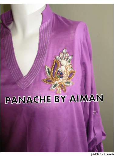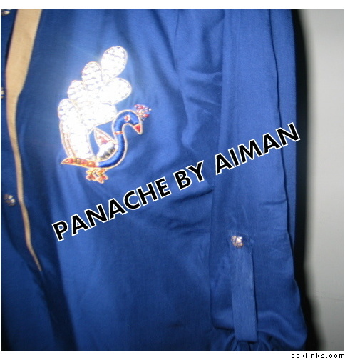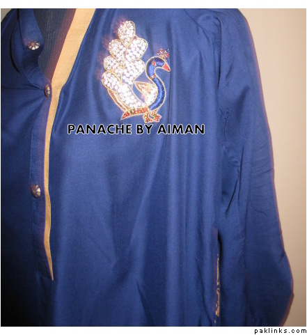 Descptn… : Its a ready to ship item in Arabian butter linen. with an embellished Peacock Motif on the front of the SHIR. Can be worn with Palazzo / Trousers/ Pants