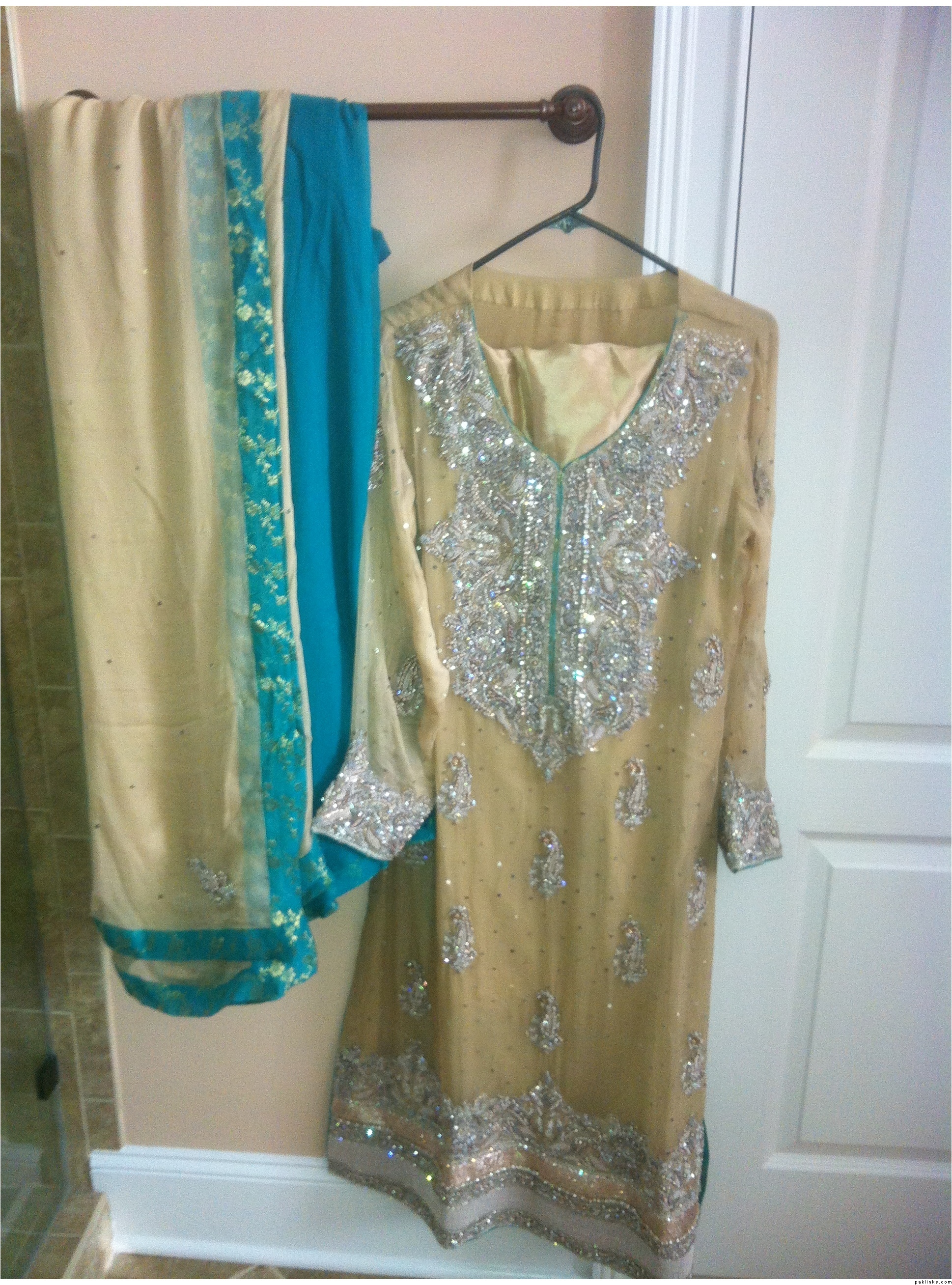 The kaam is different and exquisite. I love this outfit and am only selling this because it turned out to be the same colors as another formal I have. Would def get this remade in another color combo if I’m able to sell this. Close-ups can be provided to serious buyers only. Thank you.