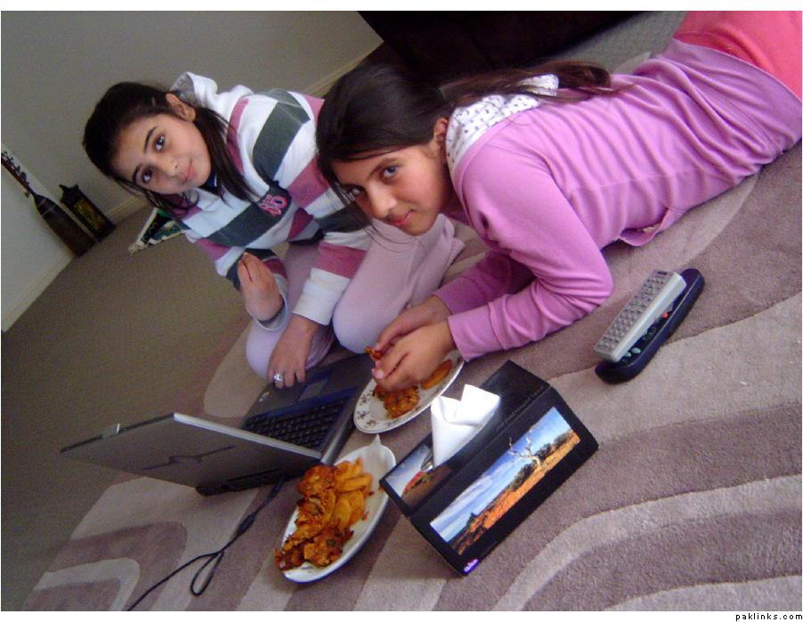 lol awww! mA what cutiessss..eating pakoray, chillin on their laptop