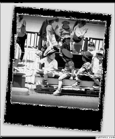 The first colour picture yay. Although you cropped it nicely you should have cut out the background people because they are distracting and it removes the focus from the train riders (assuming thats what you wanted to focus on) Its nice that you made the photo bright but in order to do that you made the faces/clothes really dark and it just loses its quality. Next time try to hold back and check the skin/clothes colour before changing it.