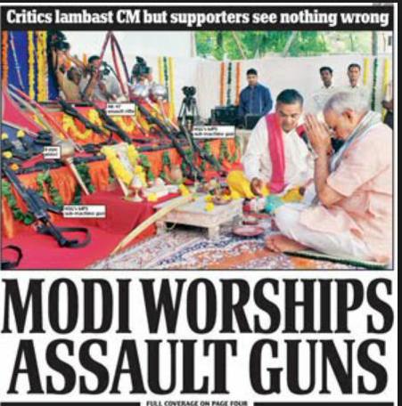 News article from India Today:Modi worships assault guns : West, News - India Today