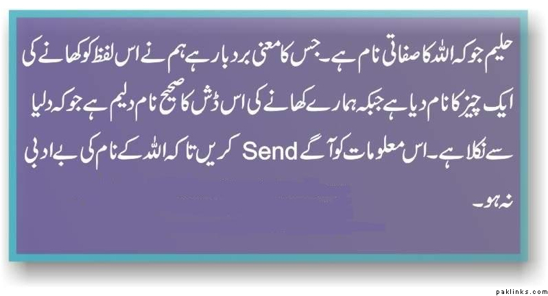 and even if we call haleem as Haleem ,y do we make things difficult for us.Allah miyan ke ek sift haleem hai to kya woh sift duniya ke cheezon mai nahi ho sakti??