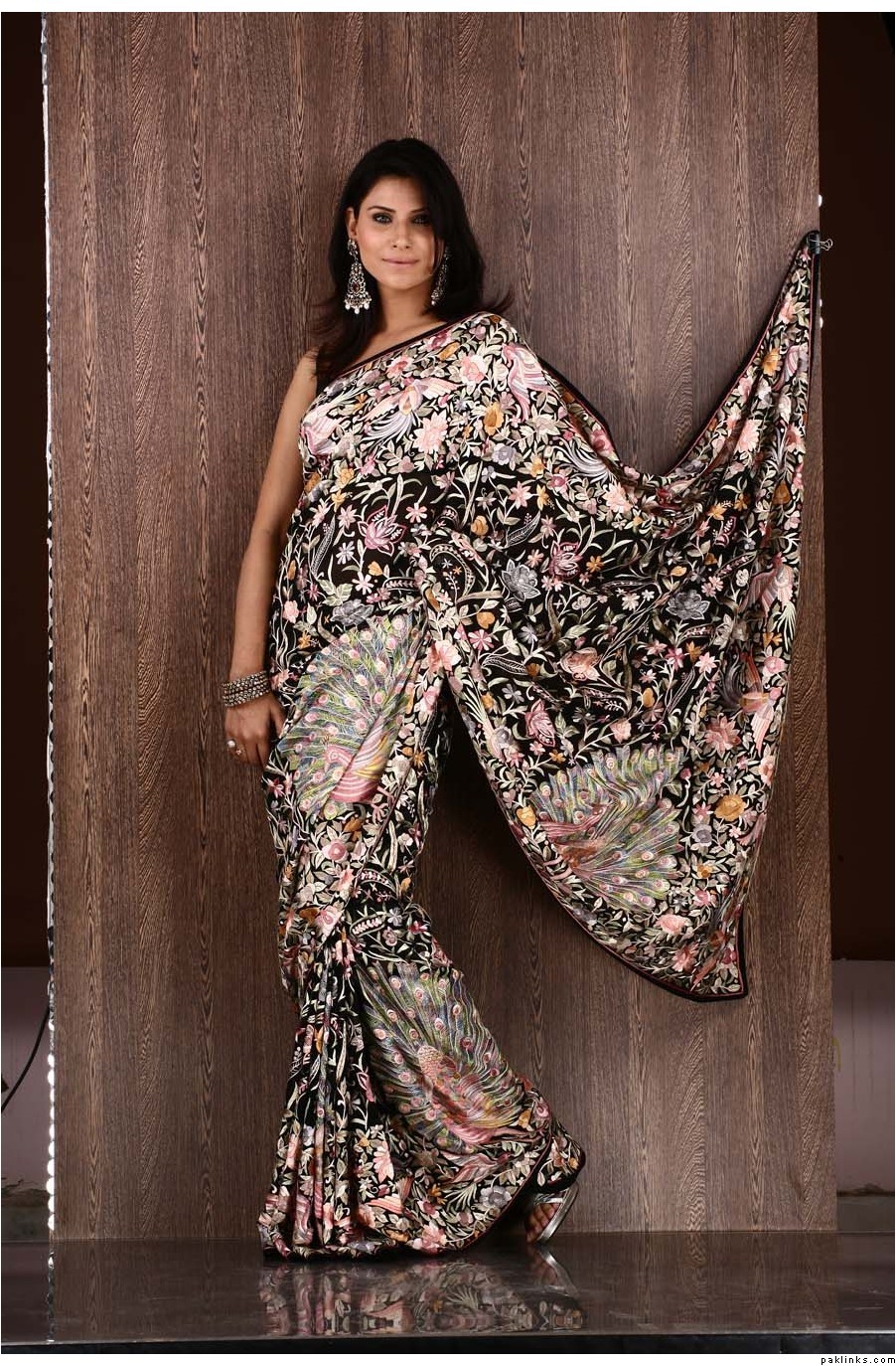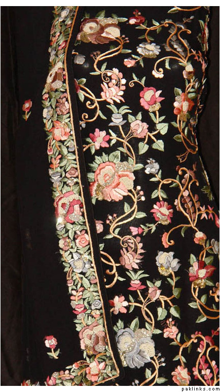 The entire colored part of this saree is super intricate Kashmiri resham work on a black base. I can’t decide if its tacky or not without seeing it in person, but the kaarigari is definitely amazing (and pricey…this is a $2,100 saree):