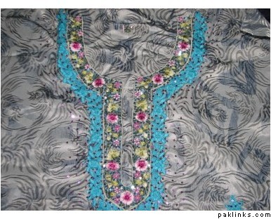 These are some more of my embriodry designe and some are mix and match chiffon suits with different shalwar pattrens and dupatta pattrens on which i do embriodry too or decorate with lace work etc.The blue one with red and silver flower is khader suit with stencil paint techniques.