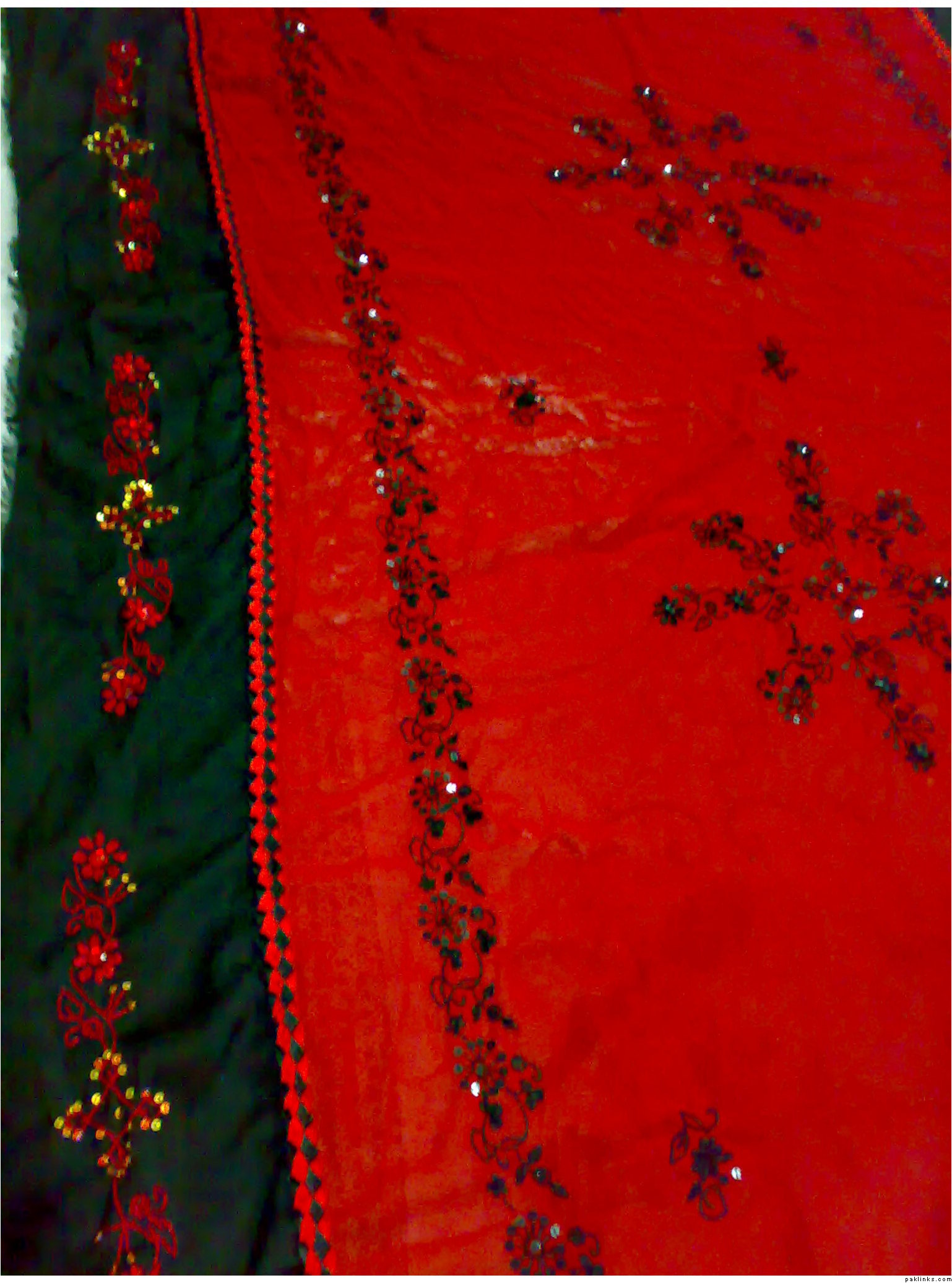 all hand done ribbon work on chiffon with same duppta with spary of lovly flowers as well