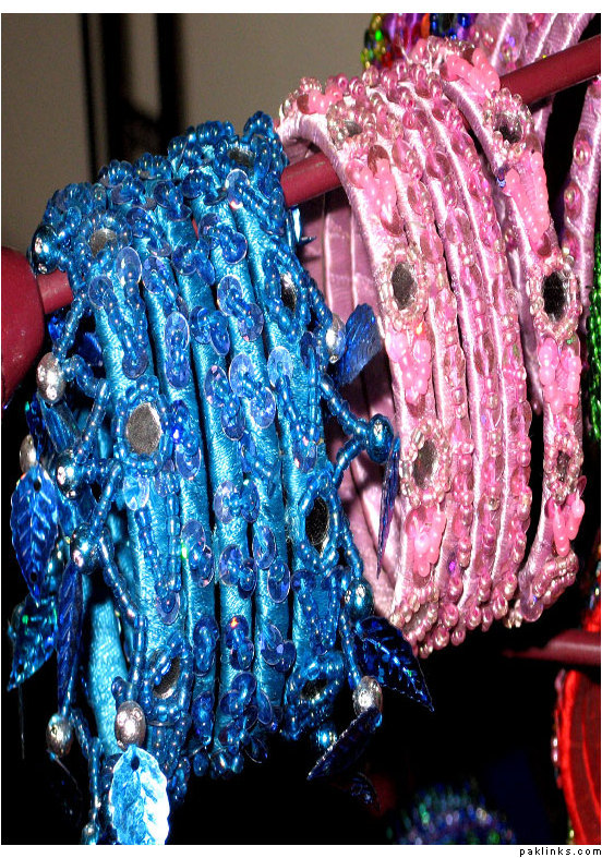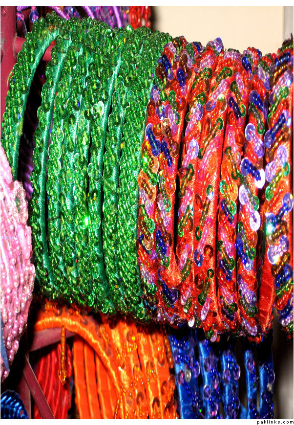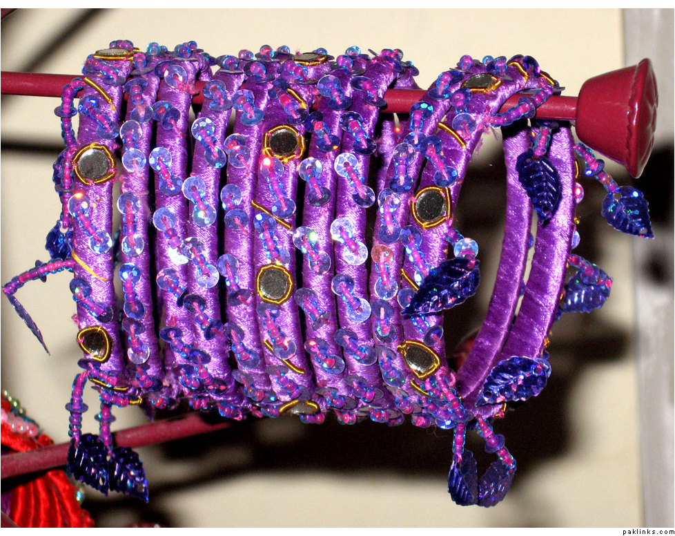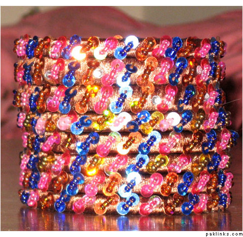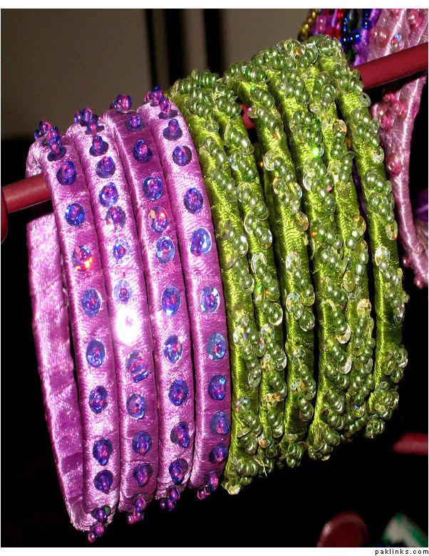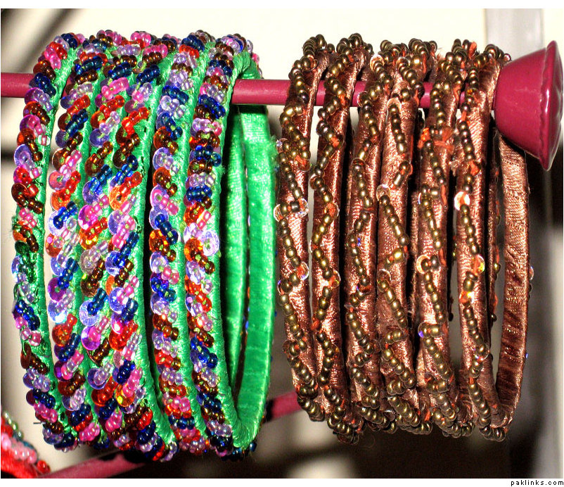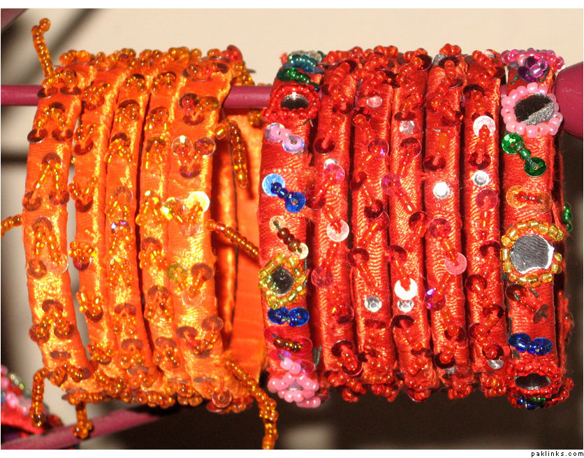 Material used in these bangles are ribbon, motti sittara, sheesha, kora and small size nug ..