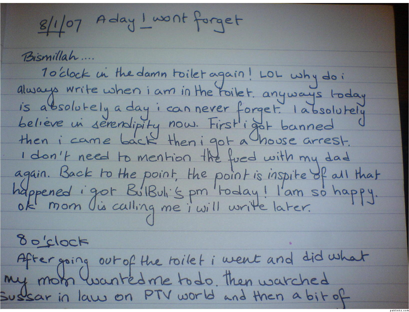 Your handwriting concludes you have a bit growing up to do sister. See, you spend so much time on GS that you have to write your journal in the bathroom. That's just sad!