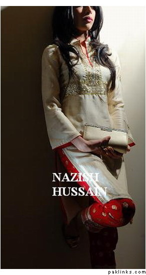 Nazish Hussian work is very unique and best in quality. She never compromise on the quality of materials and workmanship. I am her vendor and have a facebook group where i have her work pictures..You can also compare my price with her .. she is giving me dresses for really good prices because i give her orders regularly... Message me if you like to see the close up picture of her work .. i have her few dresses in stock for samples.. :)