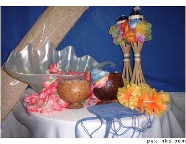 Favors can include shells, brightly colored leis and other island themed items.