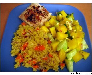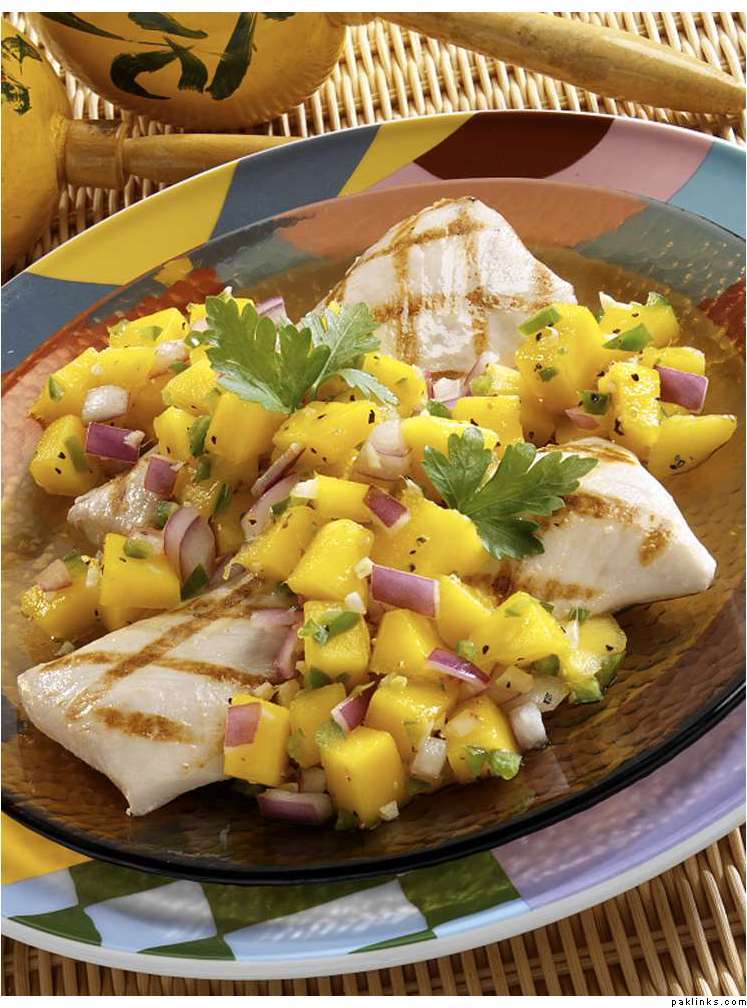 Another option is grilled mahi-mahi (fish) with mango salsa and some grilled veggies over rice.