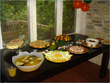 For dessert, offer tropical sorbets or fruit kabobs drizzled with chcolate or strawberry sauce.