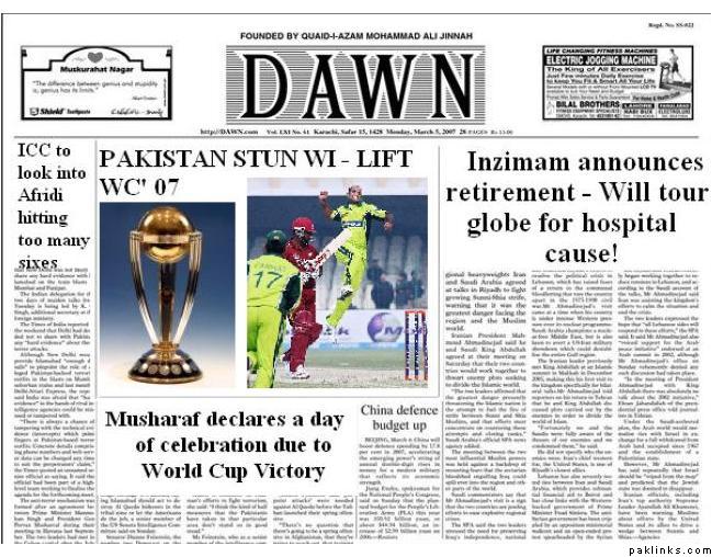 Can't blame dawn..Looks like it's world cup fear...nahin...fever among Pakitsani folks!:D