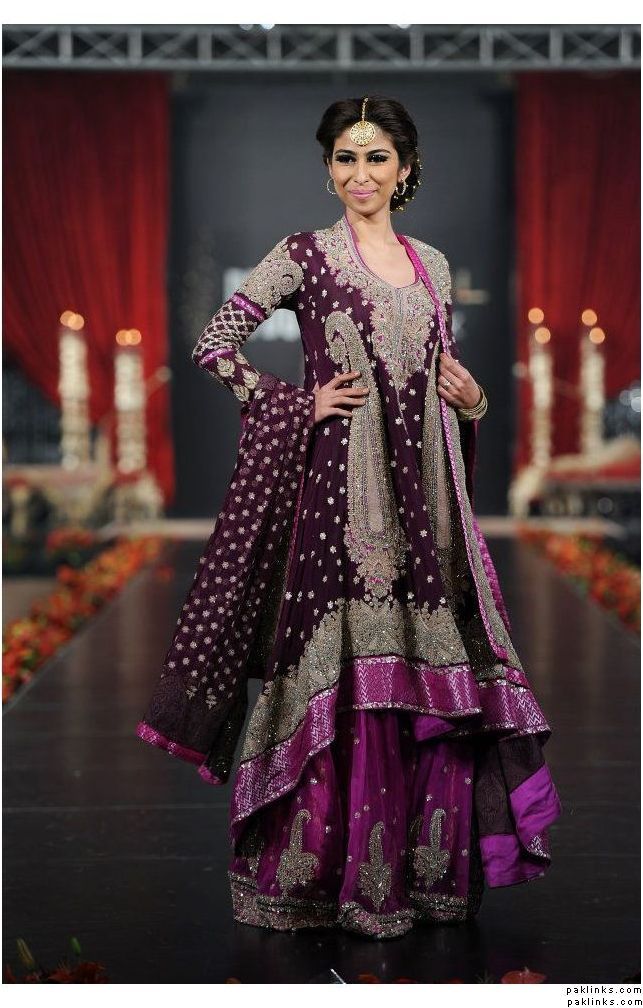 For that purple bridal OP posted, I'd say get a straight cut kameez with churidhar pants, rather than the long-at-the-sides thing and high in the middle, I hate that style with a passion!