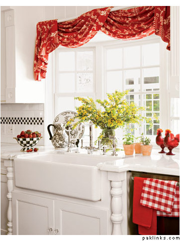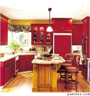 CB - i agree with what the others have said. maybe pick red accessories (i.e. - chairs, chair cushions, fridge magnets, etc.) that will go with the kitchen, instead of making the entire kitchen red. i wonder what Mr.CB’s got to say about a red kitchen?
